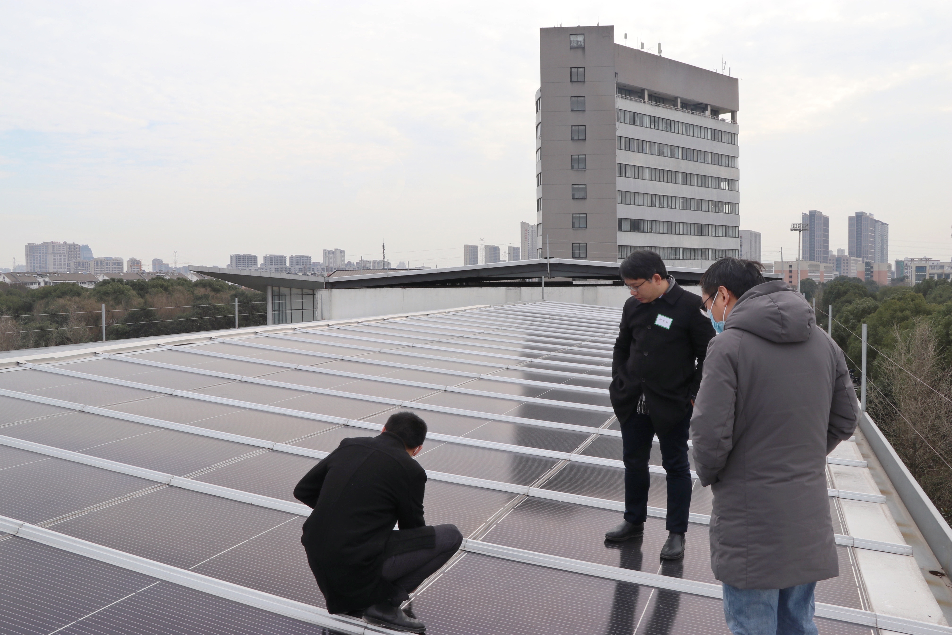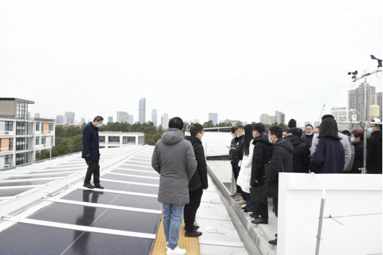 与会人员参观了我校屋顶建筑光伏一体化示范项目、储能系统及用能系统等。学校科研处处长胡长兴教授就我校建筑光伏一体化项目及进展情况做了主题发言,详细介绍了“八合一”新型建材型太阳能光伏瓦技术,指出这种光伏瓦采用一体成型结构化防水密封系统,成功解决了传统BIPV或BAPV屋面容易出现的漏水和渗水问题,其使用寿命、发电效率、安全性及承重能力大大提升,特别适用于学校、医院、党政机关等公共建筑屋顶光伏建设中。