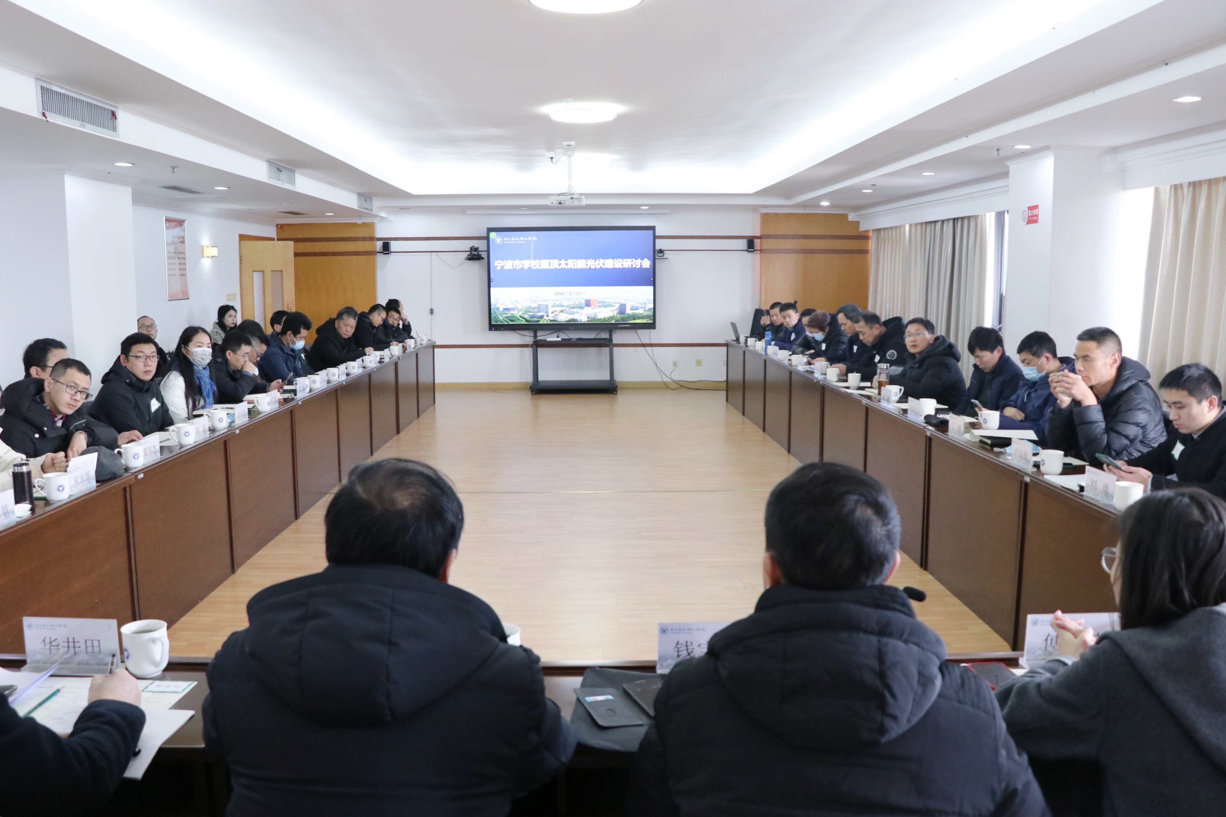 2022年2月21日上午,宁波市教育局组织宁波大学、宁波工程学院、宁波中学、效实中学、李惠利中学、四明中学、姜山中学、正始中学、宁波市职教中心学校、宁波外事学校、鄞州职教中心学校、鄞州职高、古林职高等13所学校,邀请市财政局、市能源局、市机关事务管理局及市公建中心等单位共40余人在浙大宁波理工学院召开学校屋顶分布式光伏建设研讨会。
