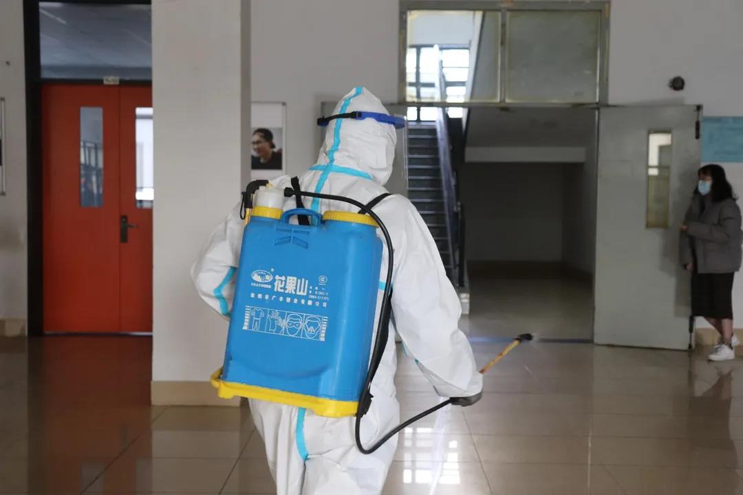 在考生转移时,全员全程无接触,并沿路消毒和设置隔离带,涉及到的教室保持通风,避免感染的可能。