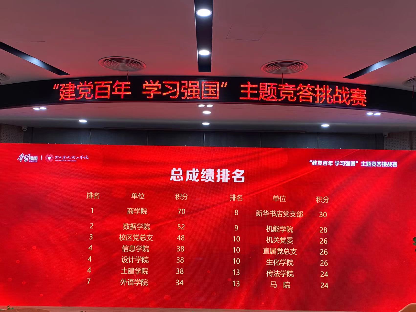 为学习贯彻党的十九届六中全会精神,深入推进党史学习教育,浙大宁波理工学院举行了2021年度“建党百年学习强国”主题竞答挑战赛暨党的十九届六中全会精神专项答题赛。