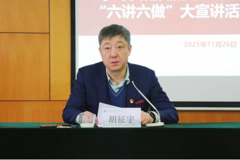 胡征宇结合个人学习体会,从深入领会总结党的百年奋斗重大成就和历史经验的重大意义,深入领会习近平总书记在全会上的重要讲话精神,深入领会党的百年奋斗的初心使命和重大成就,深入领会中国特色社会主义进入新时代的历史性成就和历史性变革,深入领会党的百年奋斗的历史意义和历史经验,深入领会以史为鉴、开创未来的重要要求等六个方面对六中全会精神作了阐释宣讲。