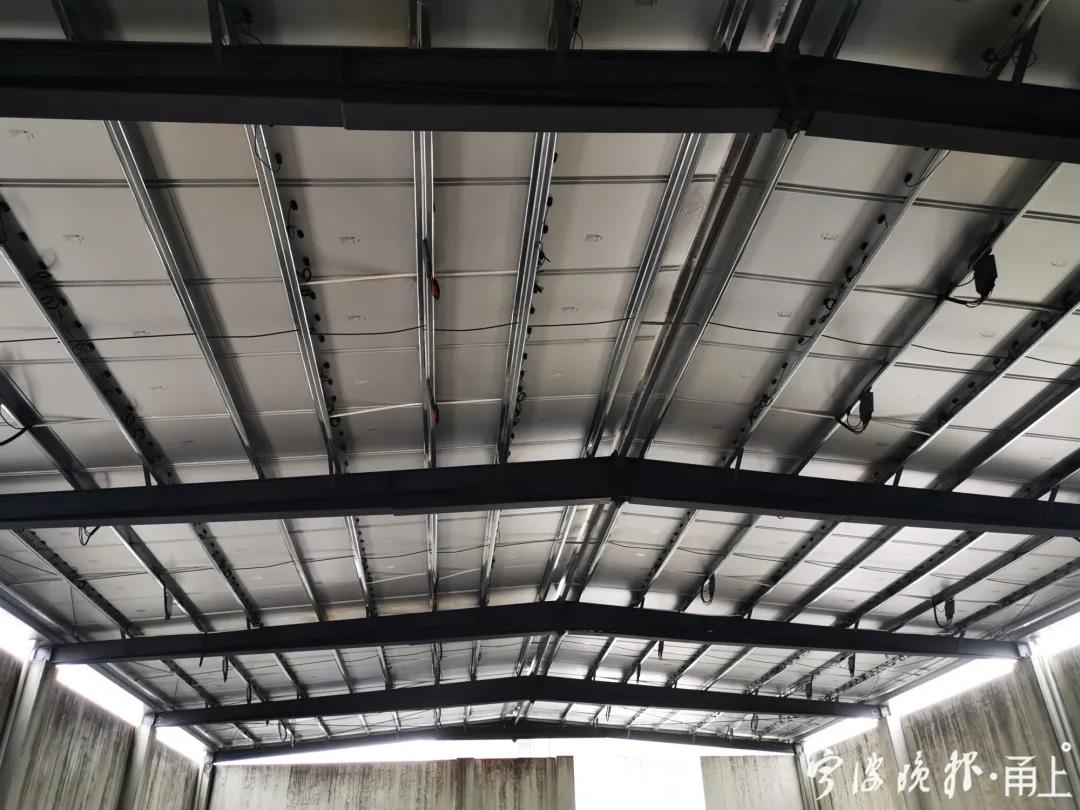 从今年4月投用的这个建筑光伏一体化示范项目,经历了盛夏的暴晒,也扛住了台风的袭击。胡长兴忍不住为它点赞:做屋顶,不漏雨,抗台风;面板不易燃烧,具有安全性;承重性强,可以像装配式建材一样拼接安装,方便后期维护;光伏采用并联组串式工作,就算一块出现问题,也不影响“大局”。