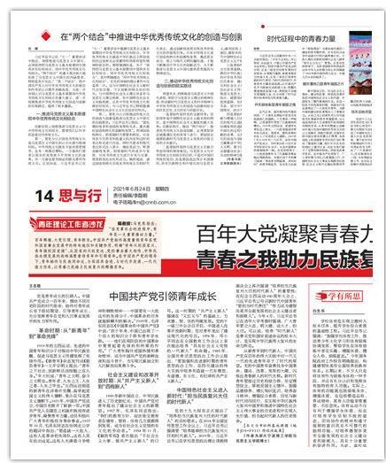 深化研究和交流。组织教师积极开展马克思主义理论和党史的研究和学术交流,形成了一批成果。其中,伍醒在《宁波日报》发表《在“两个结合”中推进中华优秀传统文化的创造与创新》,青年教师陈辉、王忠敬在《宁波日报》青年理论工作者沙龙版面上发声,吴新林在《中国社会科学报》发表《深入推进党史学习教育》,吴新林等老师撰写的论文《百年建党视域下坚持马克思主义在意识形态领域指导地位的历史考察》,获得了宁波市庆祝建党100周年理论研讨会优秀论文。费英勤院长在北京参加了由北京大学主办的第三届世界马克思主义大会,并在新时代论坛三作交流发言;学院先后邀请浙江工业大学邢乐勤教授、温州大学孙武安教授、华东师范大学叶方兴博士等专家学者来校开展学术交流,将党史理论的学术交流与青年教师培养相结合。