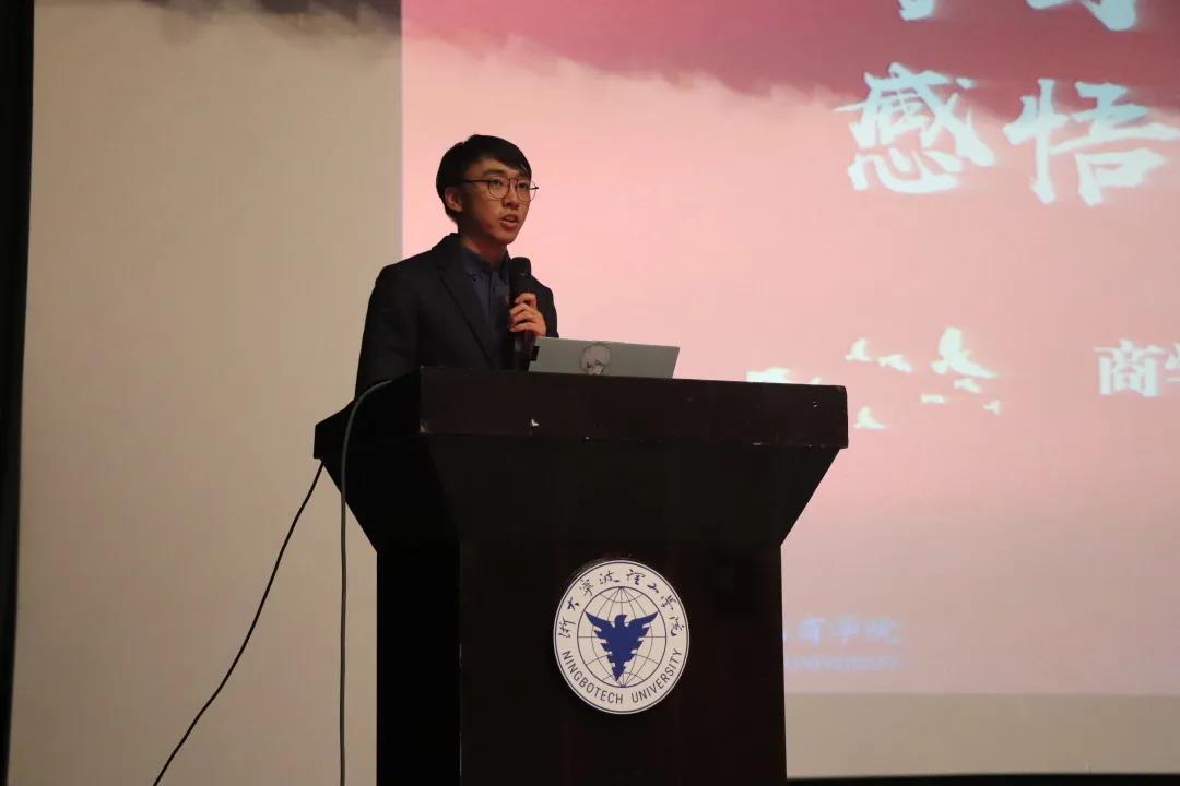 商学院团委书记潘剑邦老师围绕“初心起航”“青年榜样”“强国力量”作《学习百年党史,感悟强国力量》主题宣讲,向同学们讲述中国共产党的诞生和发展之路。他追忆到中共的起航,借中共第一次全国代表大会指出任何民族都需要自己的英雄,他们是民族的脊梁,他们历尽苦难,我们获得辉煌。他分享习近平总书记八次提交入团申请书,十次提交入党申请书的故事,勉励青年应当以习近平总书记为榜样,为心中目标不懈奋斗。他讲述疫情中的新时代,中国为解决人类问题提供了中国智慧、中国方案和中国力量,广大青年用行动证明了,新时代的中国青年是好样的,是堪当大任的。尤其是疫情期间涌现的火场勇救老人的郑佳怡同学,彰显了宁理青年的使命和担当。