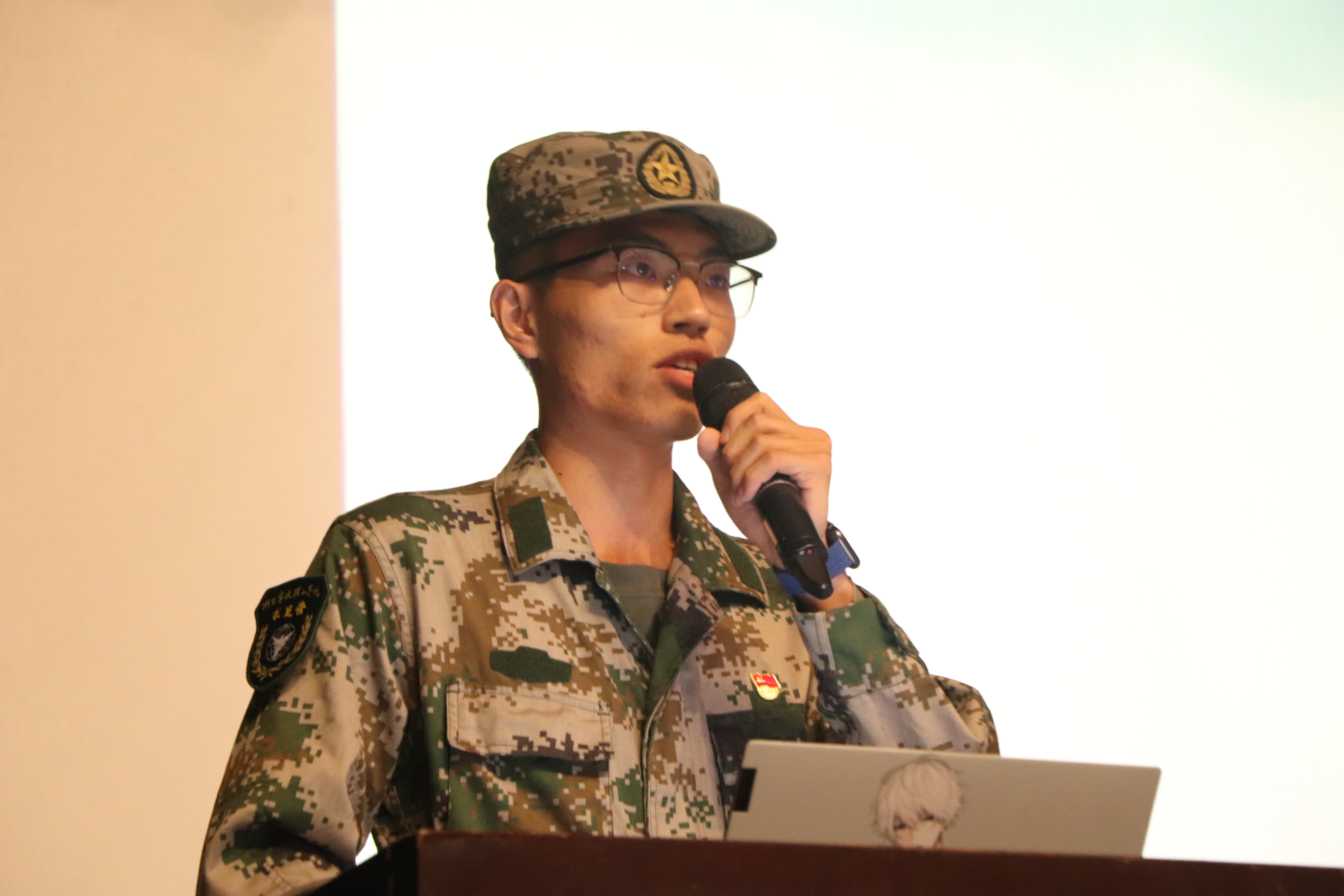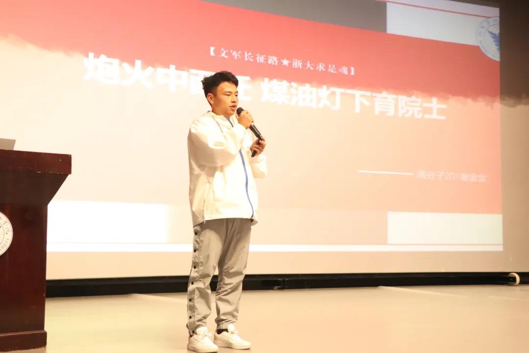 设计学院建筑192班于家辰同学为大家带来了擎旗出征类宣讲《脚步丈量大地赓续青春力量-西藏行》。浙大宁理学子紧跟习近平总书记的步伐,在列车上唱响红歌,在布达拉宫广场上向国旗敬礼,在高原上拜访宁理援藏校友,在比如县送上四千多公里外的关怀,用脚步丈量大地、用实践体悟国情,以青春的方式向部队、向国家、向中国共产党致以崇高敬礼。“当兵后悔两年,不当兵后悔一辈子”,设计学院工业设计191班陈奕阳同学为大家作了迷彩求是类宣讲《让青春在祖国的山河绽放》。陈同学通过讲述自身艰苦驻训经历和加勒万河谷的中印冲突故事,展现了战士的荣光和宁理学子的责任与担当。传法学院网新203班霍梦瑶同学作青春实践类宣讲《甬动红色浪潮赞颂精神礼歌》。围绕红色精神,霍梦瑶讲述了宁波革命老兵谯论吉老人参军入党、建功立业的故事,他们心怀革命理想,坚守红色精神,力所能及的发挥余热,将红色精神一代代传承下去。