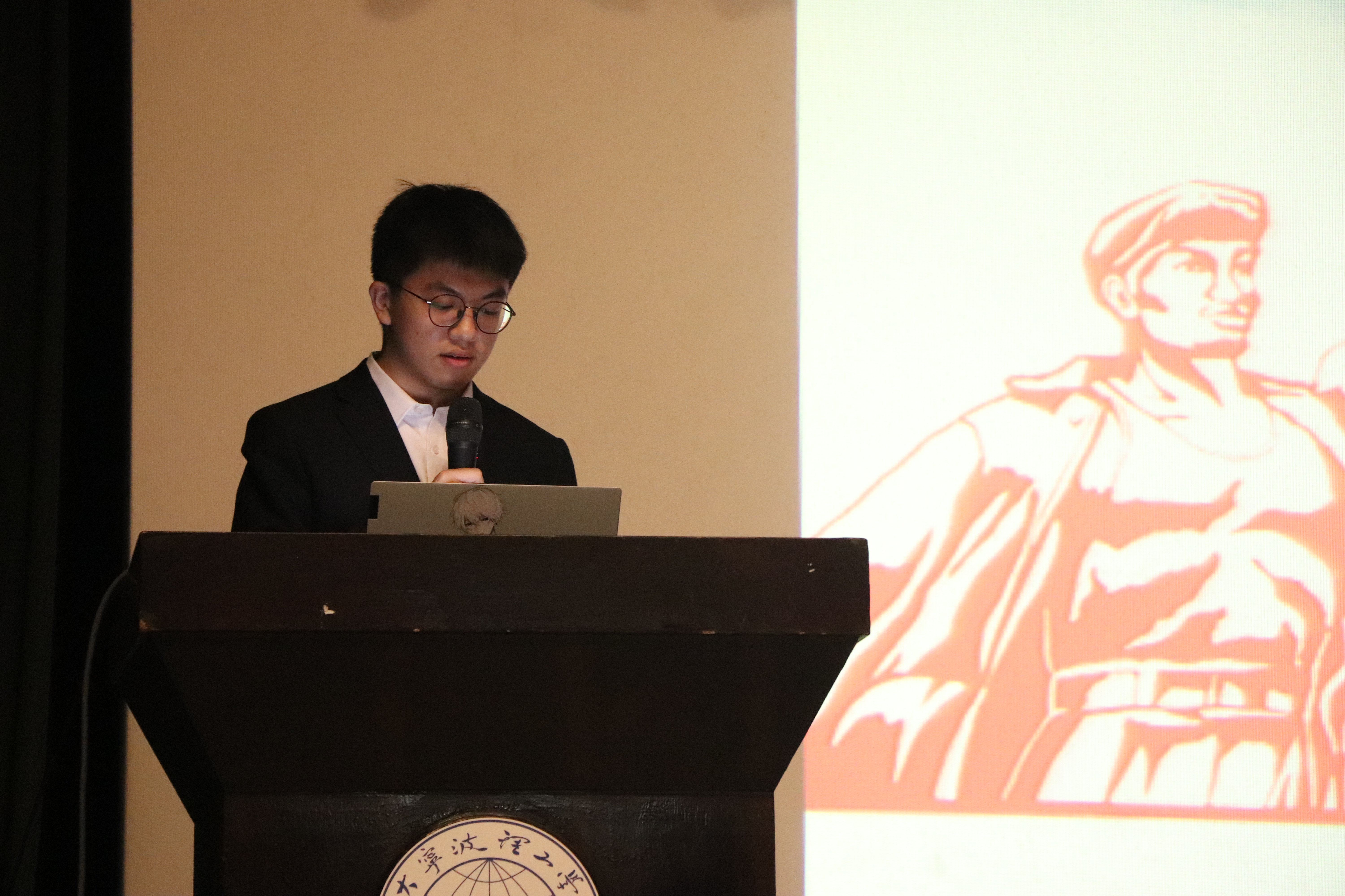 设计学院环设191班林天佑同学带来乡村振兴类宣讲《青年齐努力 乡村可振兴》。他分享了今年暑期带队赴奉化雷山村开展“艺术点亮乡村”墙体彩绘的经历,呼吁青年为乡村振兴贡献青春力量,展现了当代大学生肩负起强农兴农的决心。“从初迁浙江建德,到二迁江西吉安、太和,三迁广西宜山,最后迁至贵州遵义。”生化学院高分子201班谢金金同学带来的求是黔进类宣讲《炮火中西迁 煤油灯下育院士》,让同学们深刻感受到了浙江大学始终与民族共命运、与时代齐奋进。在西迁精神、求是精神的引领下,我校青年学子定当传承好、发扬好浙大“求是创新”精神。外语学院英语203班傅优涵同学作了知行阳明类宣讲《阳明精神的创造性转化》。她用生动的语言介绍了阳明精神知行合一的内涵并提出她作为新一代的青年学子如何创造性的转化阳明精神的实质的思考。我校始终践行阳明精神,从师生共同设计王阳明雕像,到与慈善机构联合建设阳明乐咖啡,解决残障人士的就业问题,再到外语学院“用声音叙事”活动调研在宁外籍人士,师生共同创作完成300万余字作品、出版系列书籍7册,成为国内校园文化品牌,宁理学子一直都坚持阳明先生知行合一、学以致用的思想,将自己专业知识付诸实践,为实现理工梦、中国梦不断奋斗。