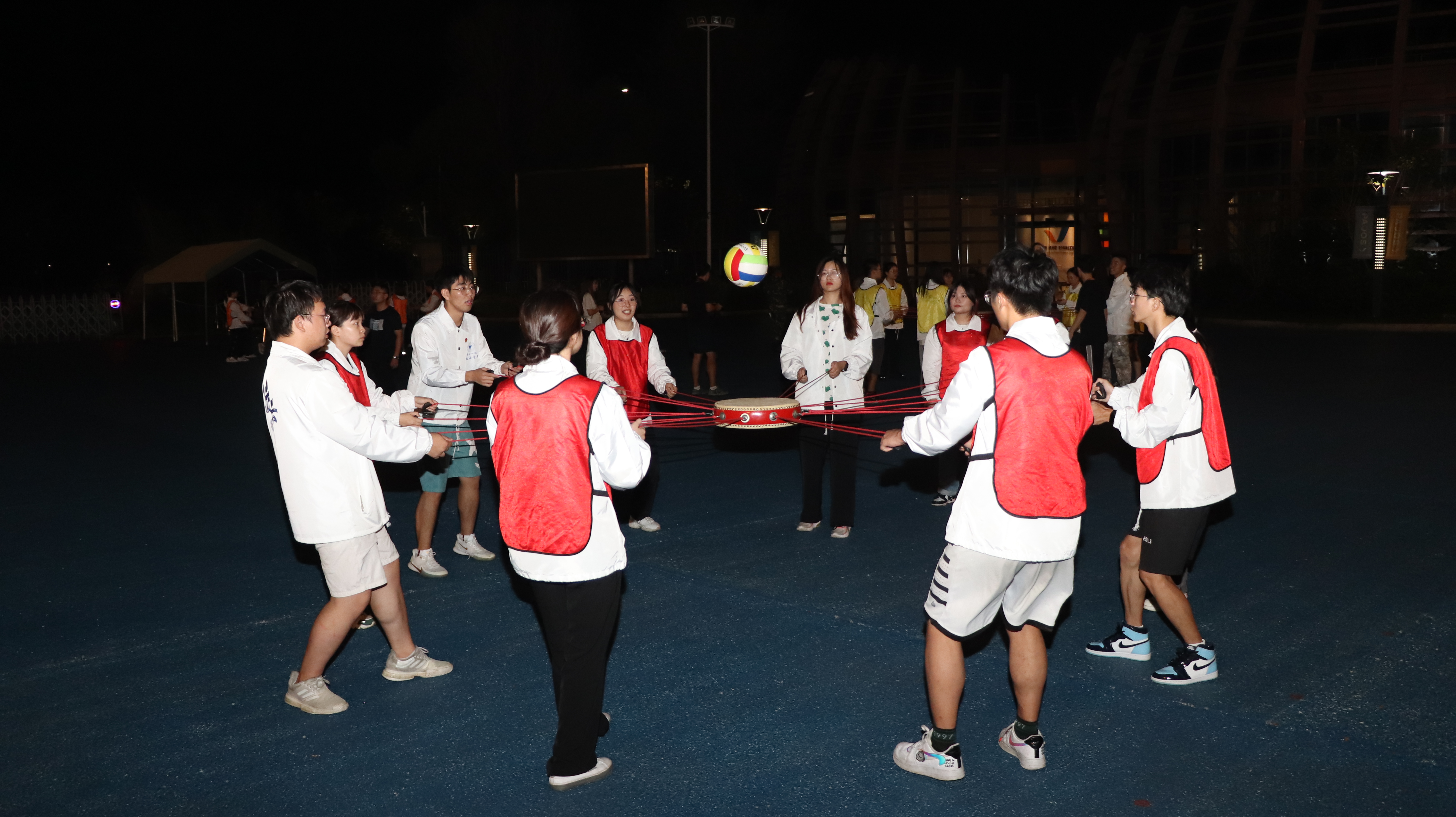 接下来,在“同心击鼓”、“极限60s”等拓展活动中,前期的失败并没有使同学们气馁,一次次地尝试,同学们在“一二三四”的呼喊声中,心逐渐凝聚在一起,挑战自我、超越自我。团队协作共出力,互相信赖也是由此开始。