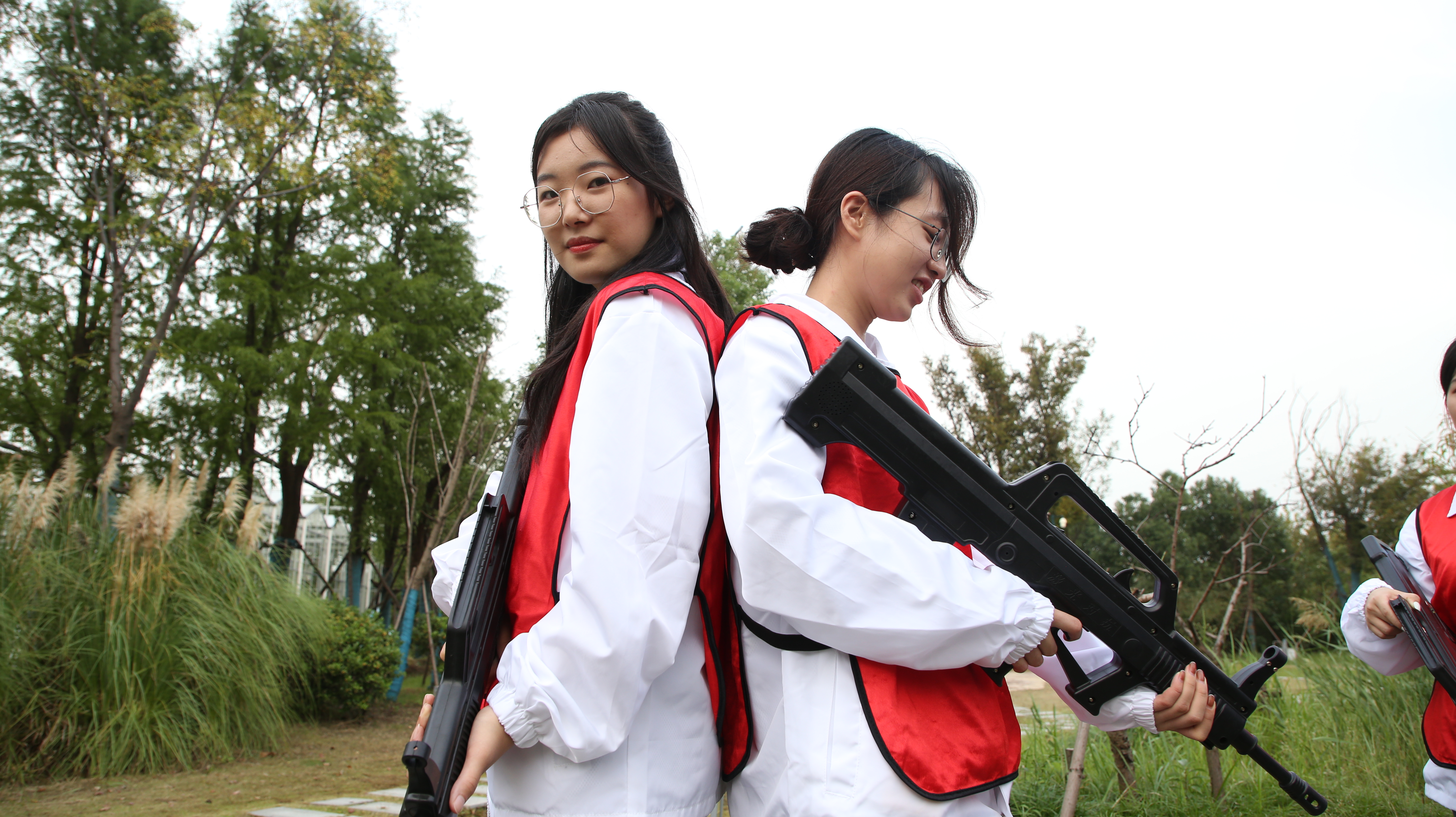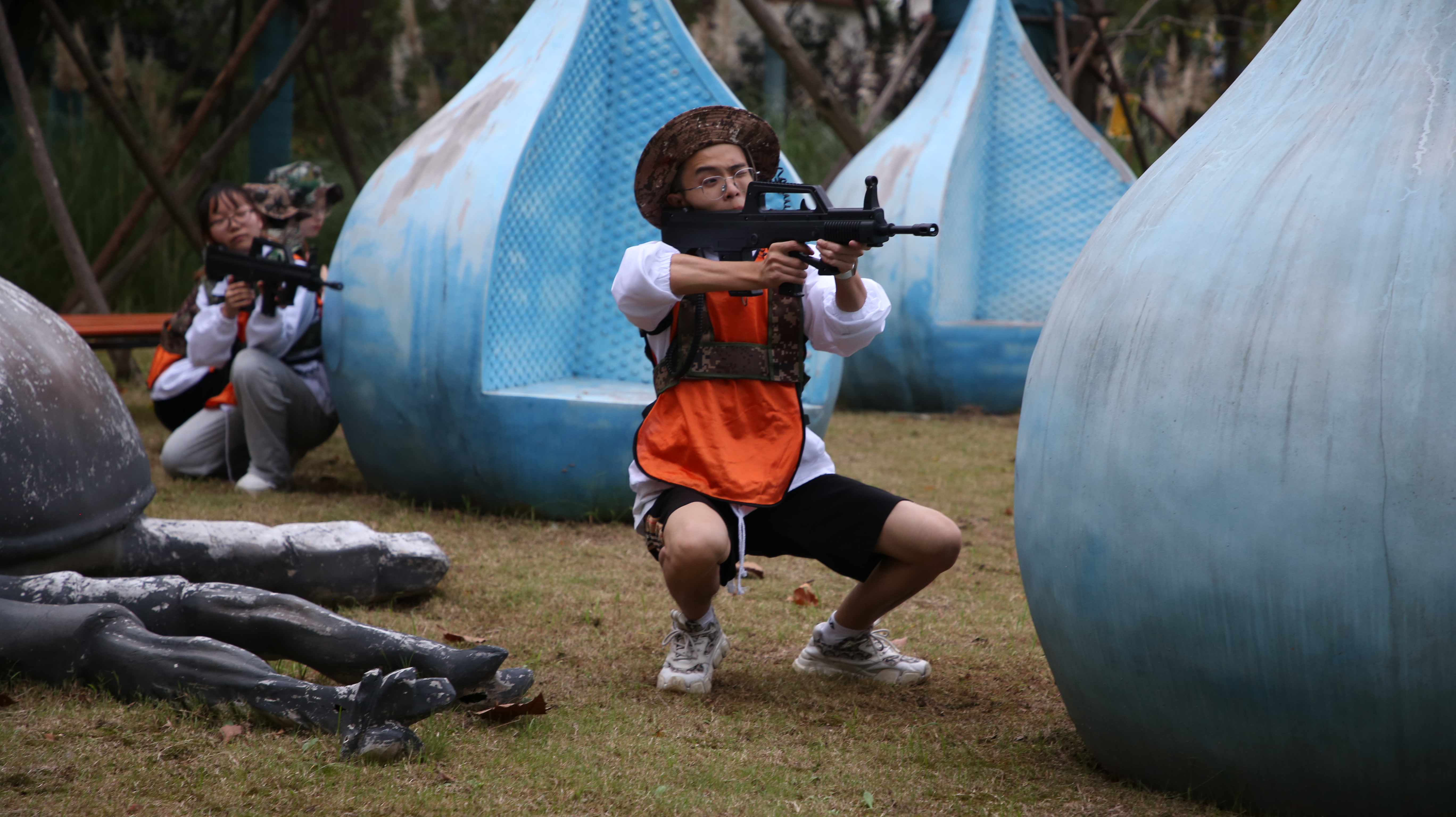 学员们们在教官的指导下分为4个小组,开展了为期两天的“真人CS”“器械拓展”“同心击鼓”“急速60s”“雷区取水”等拓展活动。