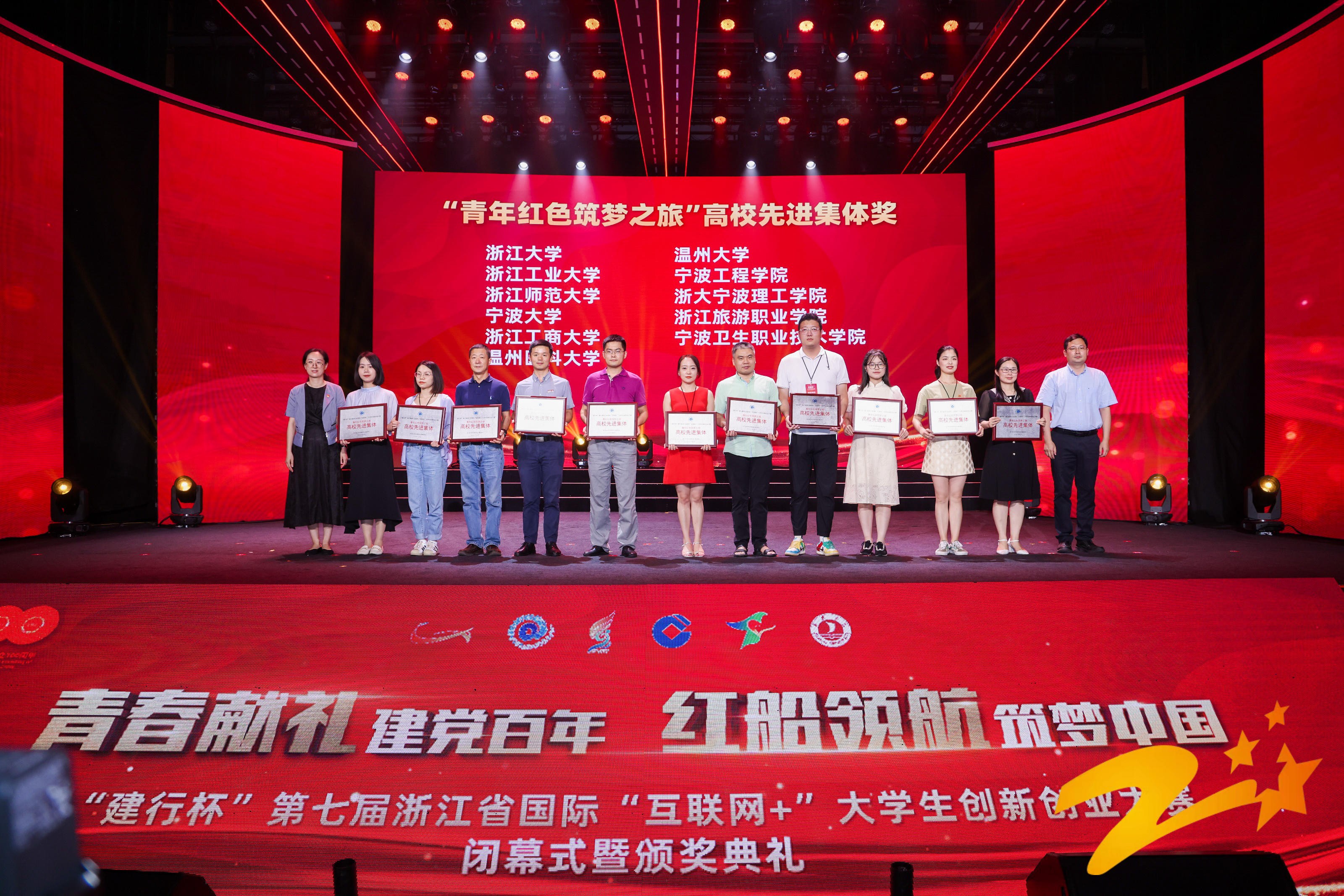 李靖慧、萧颖琦、肖宇欣、何诗琦、姚晓晟、张唯希等参赛团队的参赛项目《银巢未来——一站式养老服务引领者》获“青年红色筑梦之旅”赛道创业组金奖;汤忠武、肖宇欣、何诗琦、虞家伟、萧颖琦、姚晓晟、张唯希等参赛团队的参赛项目《渔夫原创——打造“她经济”席卷下的网红IP市场》获高教主赛道成长组银奖;俞若晨、侯纪辰、林紫函、祝硕斌、曹晨杰等参赛团队的参赛项目《路顺康——开创全球道路病害检测新时代》获高教主赛道本科生创意组铜奖。学校还被浙江省教育厅评为“青年红色筑梦之旅”高校先进集体。