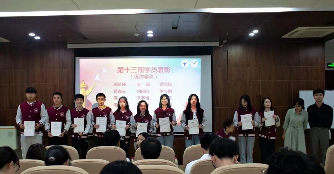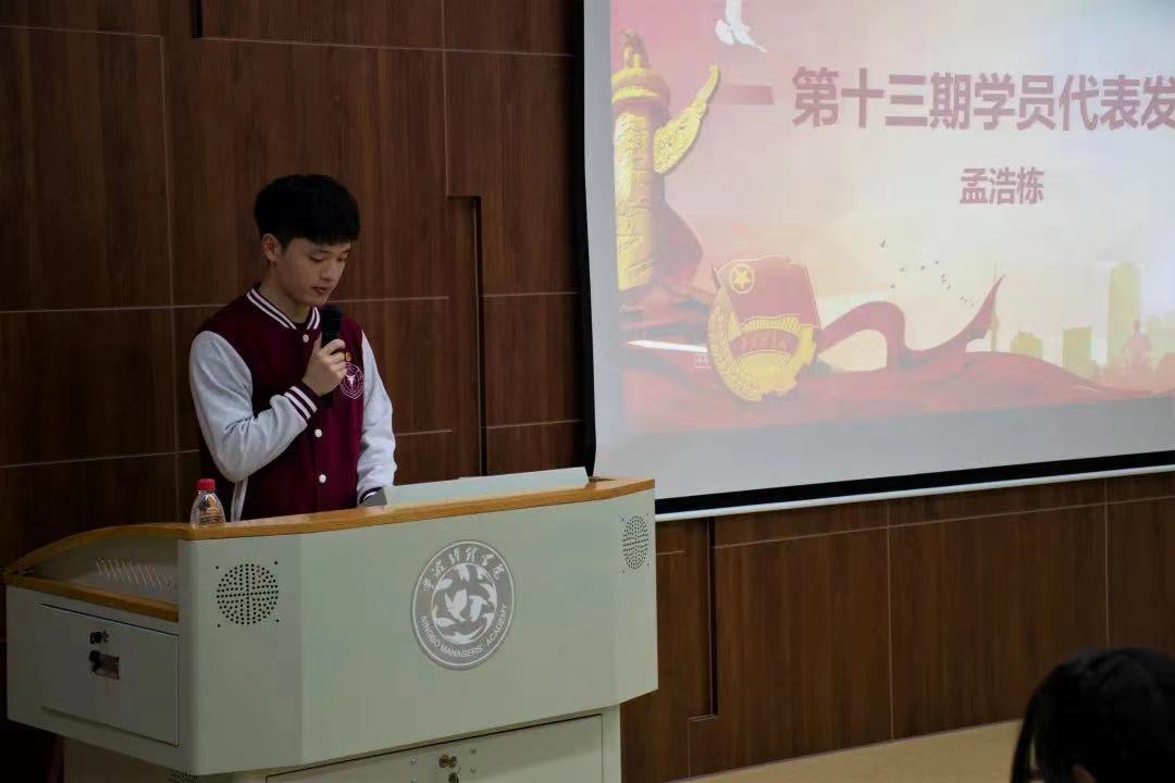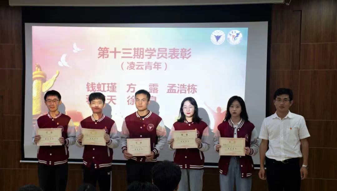仪式在庄严的国歌声中拉开序幕。青马班自2007年开班以来,走过了13个年华,培养700余名优秀的凌云青年。本次大会,对十三期青马班学员们在理论学习、主题宣讲、实践实习等方面的优异表现进行了肯定。特别是今年3月以来,青马班开展的“建党百年,宁波百人百事”进班级、进社区、进乡村等近300场主题宣讲,为讲好宁波故事贡献了青春力量。会上,授予尹心雨、刘闪闪等12名学员第十三期“优秀学员”称号,授予钱虹瑾、方露、孟浩栋、蒋鑫天、徐仲5位学员“凌云青年”称号,胡亚老师、丁六申老师为优秀学员、凌云青年颁奖。第十三期青马班学员孟浩栋代表老学员发言,他向新学员讲述了自己在研习营的成长历程和心得体会,并期待新学员在研习营有所收获,成为一名真正爱国、有理想有担当的新时代的有为青年。