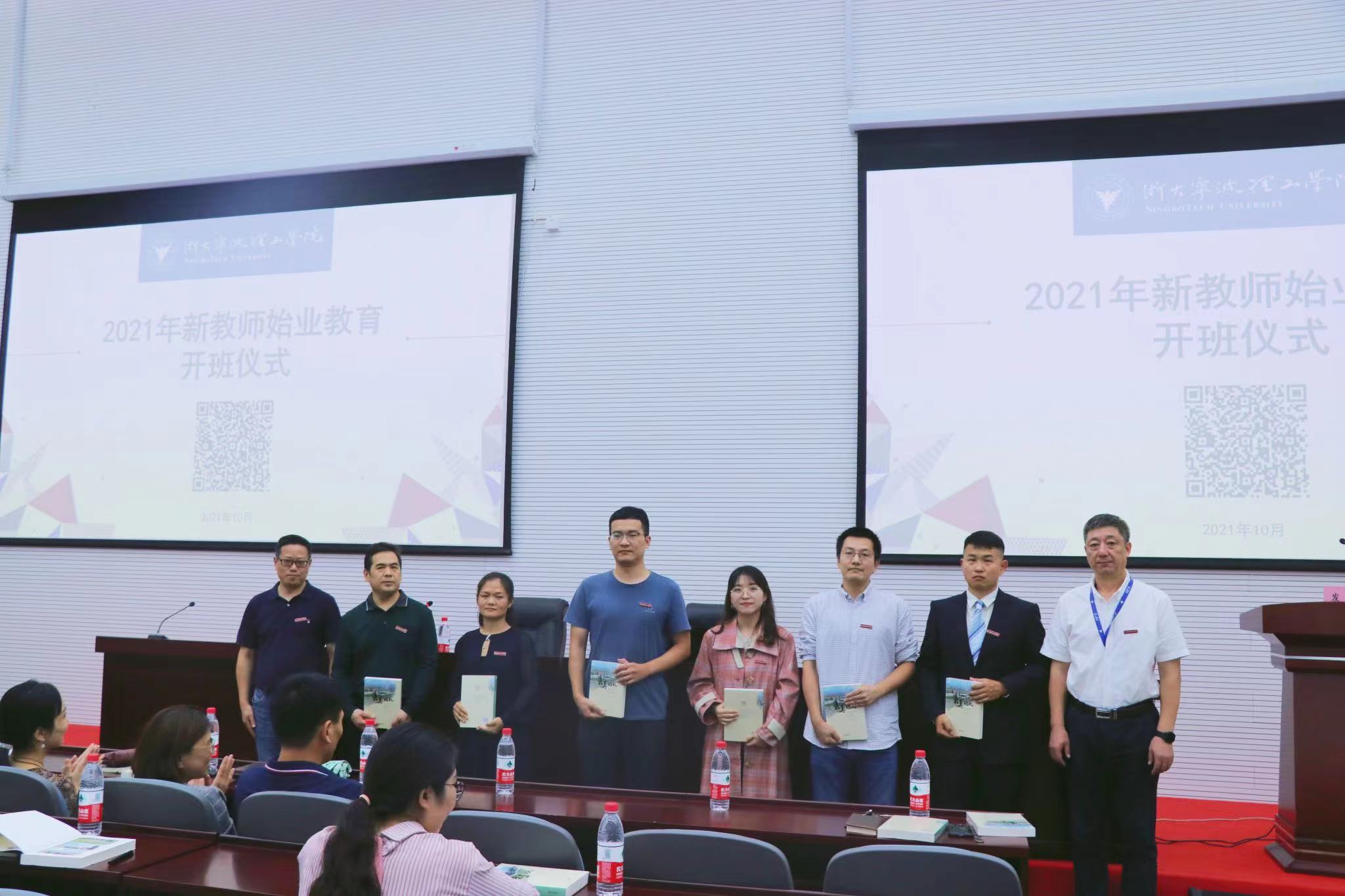 会上,胡征宇、鲁东明代表学校欢迎全体新教师加入浙大宁理的大家庭,并为新教师代表佩戴校徽、赠送书籍《最美记忆——浙大宁波理工学院建校二十周年口述校史访谈录》。生化学院钟宇飞老师代表新教师发言。他表示,作为浙大宁理的一名新教师,将整装待发,直面挑战,不辜负学校的信任,在自己的岗位上努力做出成绩,为学校的发展尽一份力。