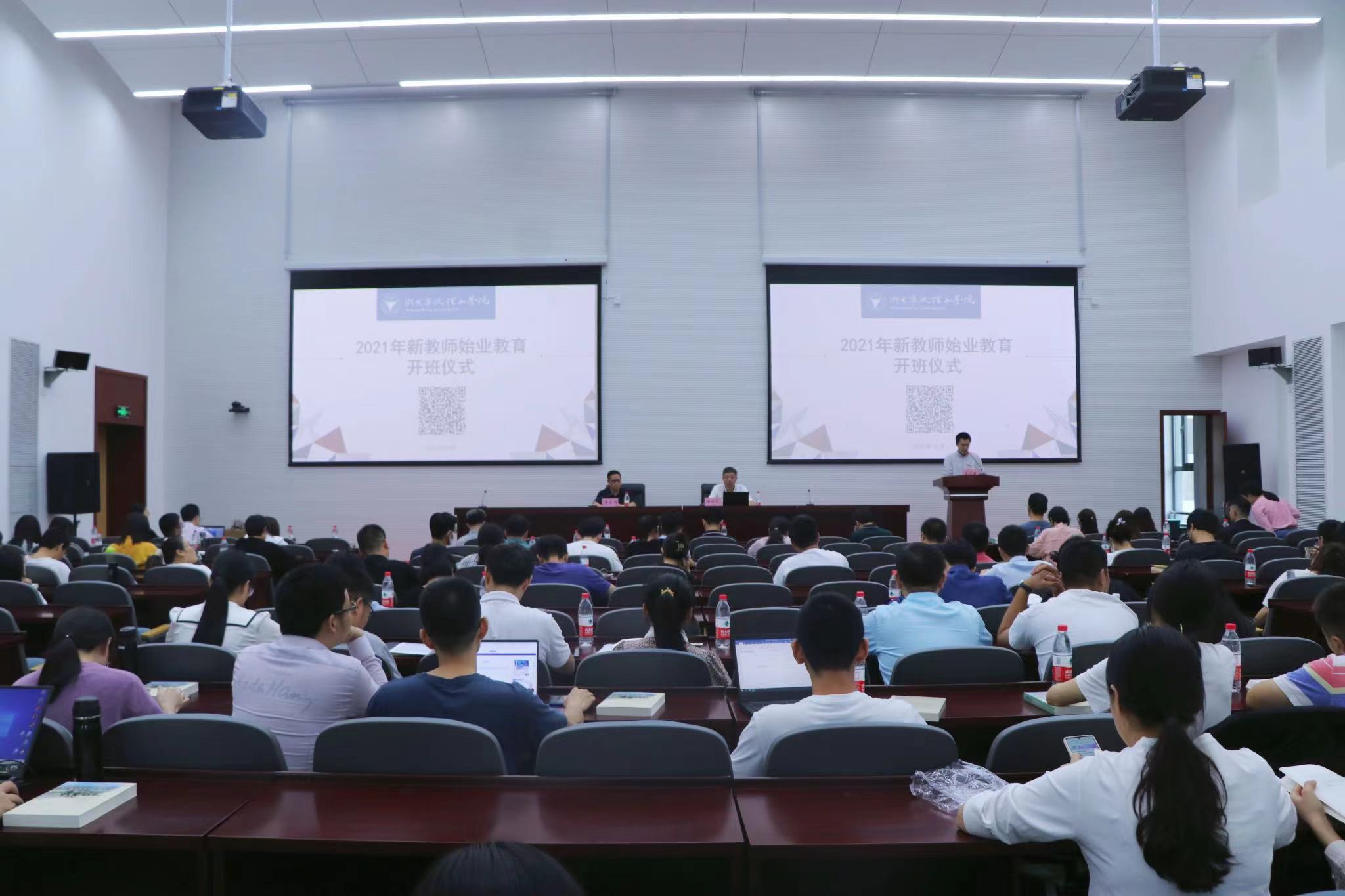 10月13日下午,学校2021年新教师始业教育培训开班仪式在学术交流中心1号楼405室举行。120余名新教师齐聚一堂,共同聆听“入职第一课”。学校党委书记胡征宇出席并作专题讲座,副校长鲁东明主持会议,校党办校办、人事处、宣传部、教务处、科研处等相关职能部门负责人参加。