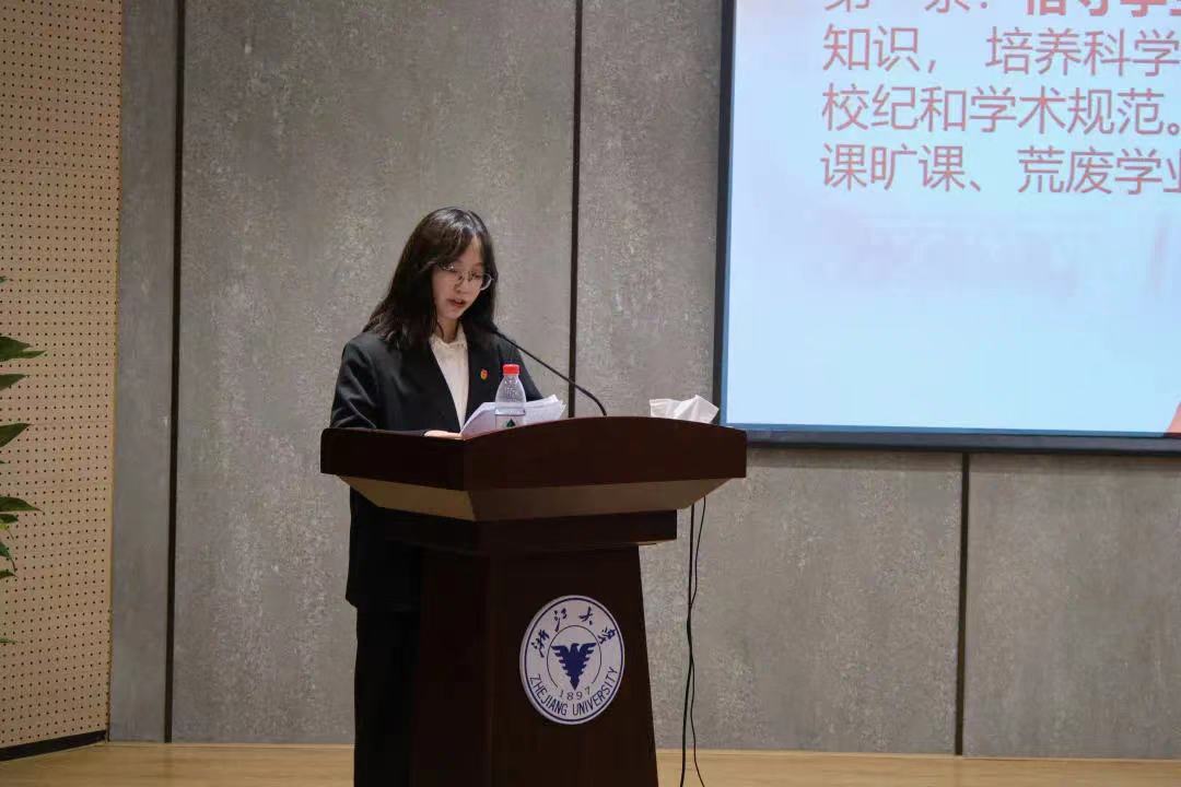 校学生会主席团成员俞方璇从近期黑龙江职业学校学生会的反面案例为引,带领全体学生干部深入学习全国学联《关于学联学生会工作人员改进作风服务同学的若干规定》。学生会干部应当“恪守学生本分、牢记服务宗旨、永葆理想情怀、勤勉务实做事、营造平等氛围、摒弃庸俗习气”六大要点,带头勤奋学习,真切服务师生,遵守校规校纪,严禁官僚主义,勿让“学生会”成为特权的代名词。