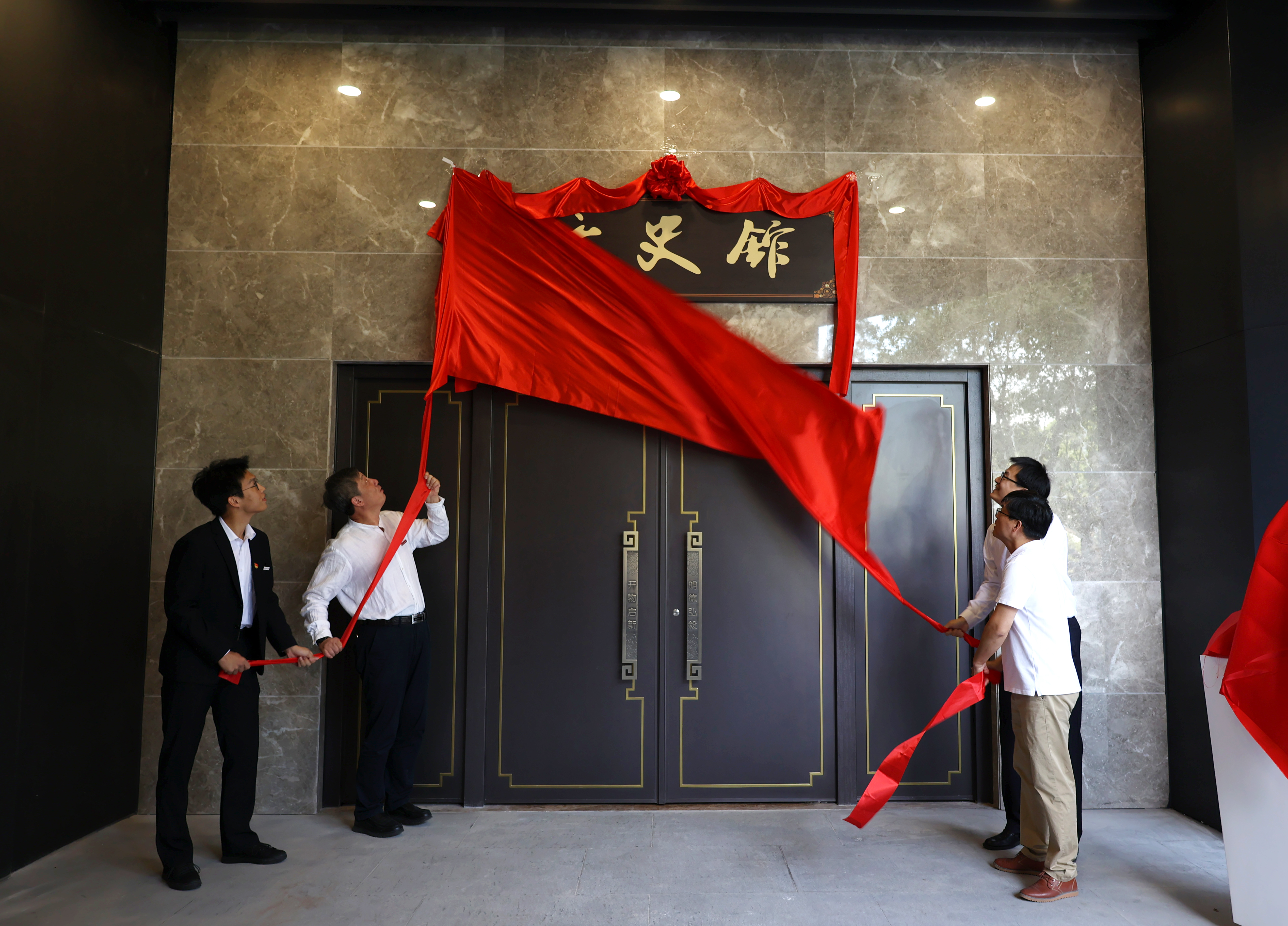 修史建馆,薪火相传。在浙大宁波理工学院校庆日——9月24日,校史馆揭牌仪式于图书馆一楼北侧隆重举行。学校党委副书记李凤旺主持该仪式。学校党委书记胡征宇、校副校长鲁东明、学校纪委书记黄光杰、学校原党委书记费英勤出席本次活动。学校各部门、直属各单位和各学院负责人、校院两级学生会主席、学生代表、退休教师和校友代表、参与《最美记忆--浙大宁波理工学院建校二十周年口述校史访谈录》采写的师生代表参加了此次揭牌仪式。在热烈的掌声中,党委书记胡征宇,在职教师代表舒振宇,校学生会执行主席黄浩栋,首届毕业生、校友代表叶敏辉共同为校史馆揭牌,见证校史馆落成。