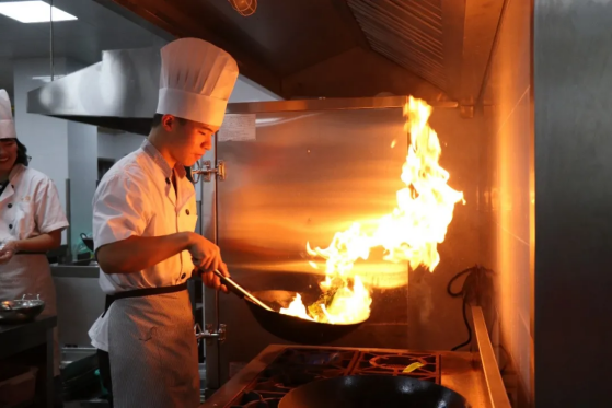 在开物园餐厅,来自12个不同省份的同学参加了“寻味家乡菜”的活动。同学们都是第一次走进食堂后厨,第一次穿上白褂子,第一次戴上厨师帽,第一次用大勺大锅炒菜,新奇和兴奋之情溢于言表。