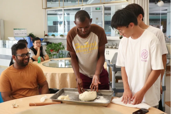 “第一次在学校过中秋,也是第一次在食堂后厨自己烧菜,还吃到了其它地方的美食,太棒了!”来自江西的2021级新生黄伟强说道。他做了一道抚州泡粉,很受欢迎,“我把照片发到家庭群里,爸爸妈妈都给我点赞。”