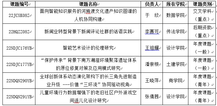 今日,浙江省哲学社会科学规划办公室正式发文公布2022年度省哲社规划课题立项名单。我校共获批6项,其中重点课题2项,一般课题2项,青年课题2项,立项总数与重点课题数均为建校以来最高,并首次获批交叉学科重点支持课题与后期资助重点课题。