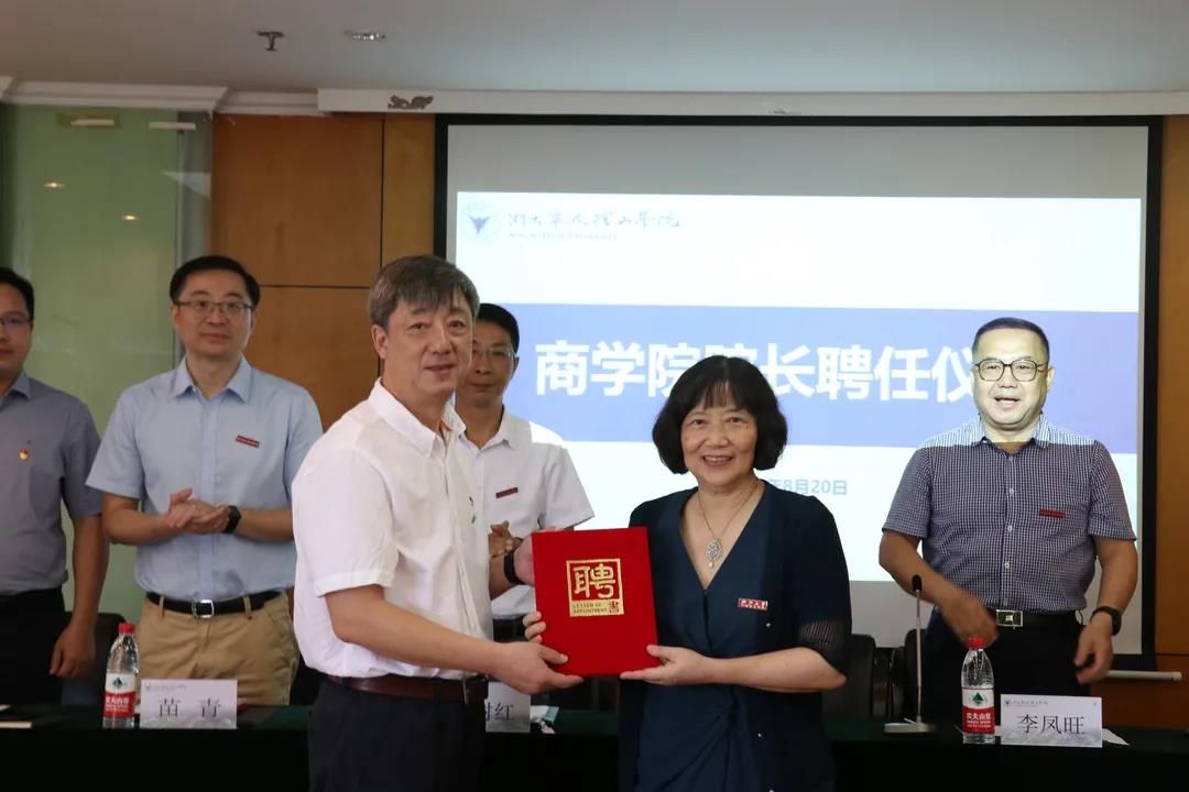 肖文教授、王小潞教授因为年龄原因不再担任商学院、外国语学院院长。胡征宇代表学校对肖文、王小潞为学院发展做出的努力和贡献表示感谢。肖文教授2009年起,先后担任学院经济与贸易学院院长、商学院院长。在担任院长期间,成立十余个有影响力的服务平台,百余个省部级以上科研项目获批立项,上万余名经济与管理专业毕业生走向社会;外源科研到款经费近一亿元,推动学院在两个阶段的跨越发展。王小潞教授2014年起担任外国语学院院长。七年来,结合学科特点,不断聚焦和凝练学科方向,获批教育部国别与区域研究中心——波兰研究中心,成为学科发展的重要平台;推动阳明学堂建设,拓宽学科交叉融合,实现特色发展;实施师资队伍博士化工程,支持教师海外访学,师资队伍的学历结构进一步优化、国际化视野和教学能力有效提升,是学校开放办学特色的显亮窗口,外国语学院各项工作站上了新台阶。党委书记胡征宇、党委副书记李凤旺、副校长章献民,以及组织部、人事处相关负责人,商学院、外国语学院班子及教师代表等参加聘任仪式。李凤旺主持聘任仪式。
