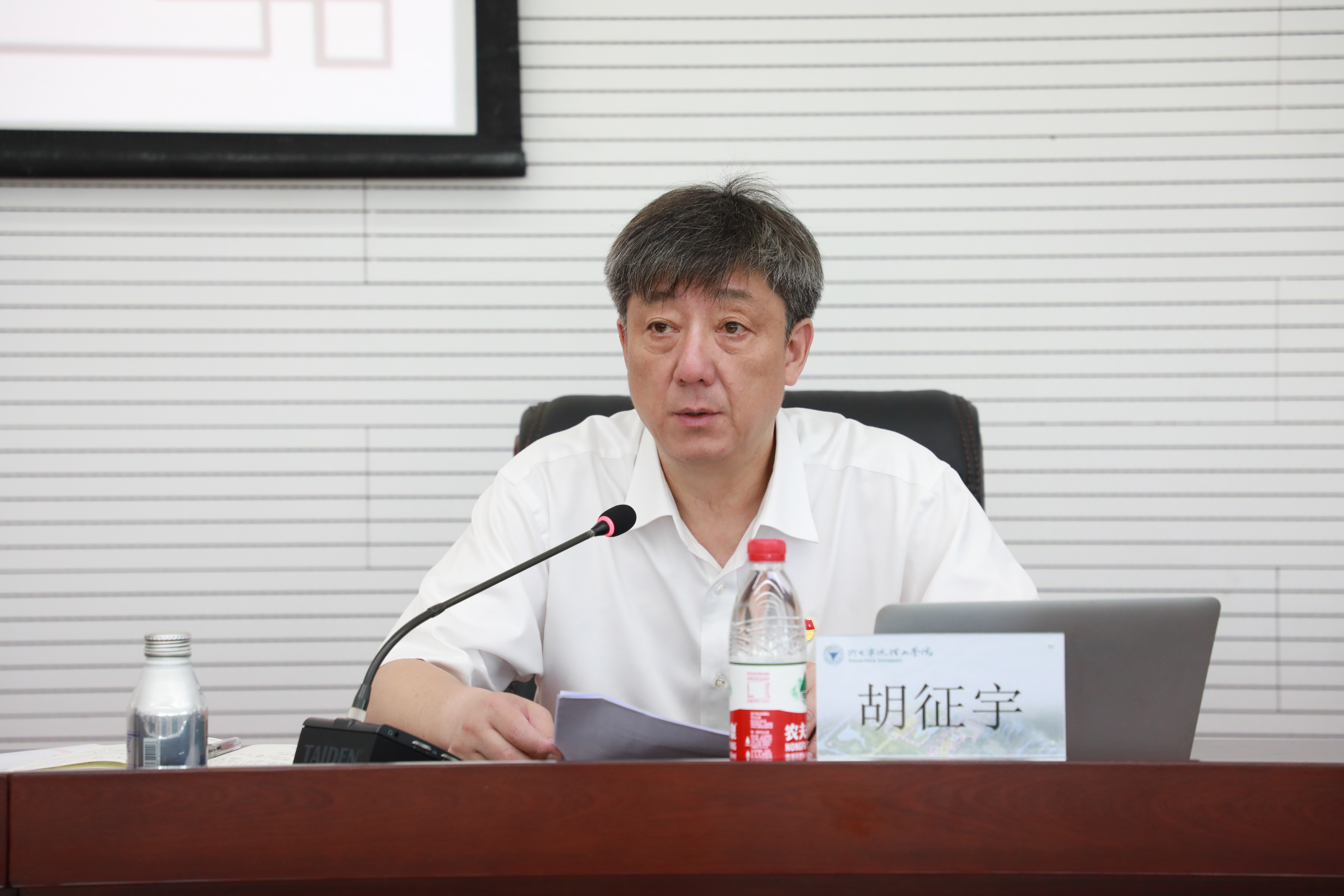 胡征宇强调,要学思践悟切实把习近平总书记“七一”重要讲话精神落在实处、落到深处。一是要把准基本原则作出系统谋划。坚持集中学与常态学相结合、重点学与全面学相结合、深入学与扎实做相结合,贯穿党史学习教育全过程,贯穿师生思想政治教育全过程,贯穿办学发展开新局全过程。二是要突出重点任务强化组织实施。要围绕人才培养、科学研究,重点抓好学习贯彻的具体措施,各级中心组要举行专题学习,发言要全覆盖;要在本单位开展集中宣讲,领导带头、党员在先,推动师生学习全覆盖;要深入课堂、班级,贯穿日常教育,课堂教学要坚持课程思政导向。三是要注重结合实际树立鲜明导向。树立“以实绩检验成效”的鲜明导向,防止学做“两张皮”,在学习贯彻中真正做到“干实事”“解难事”“谋大事”“创新事”“长本事”,重点做好科学论证和组织实施“十四五”规划、结合党史学习教育办实事要求高质量办理好教代会提案、与年度重点工作任务对标对表压实推进等。