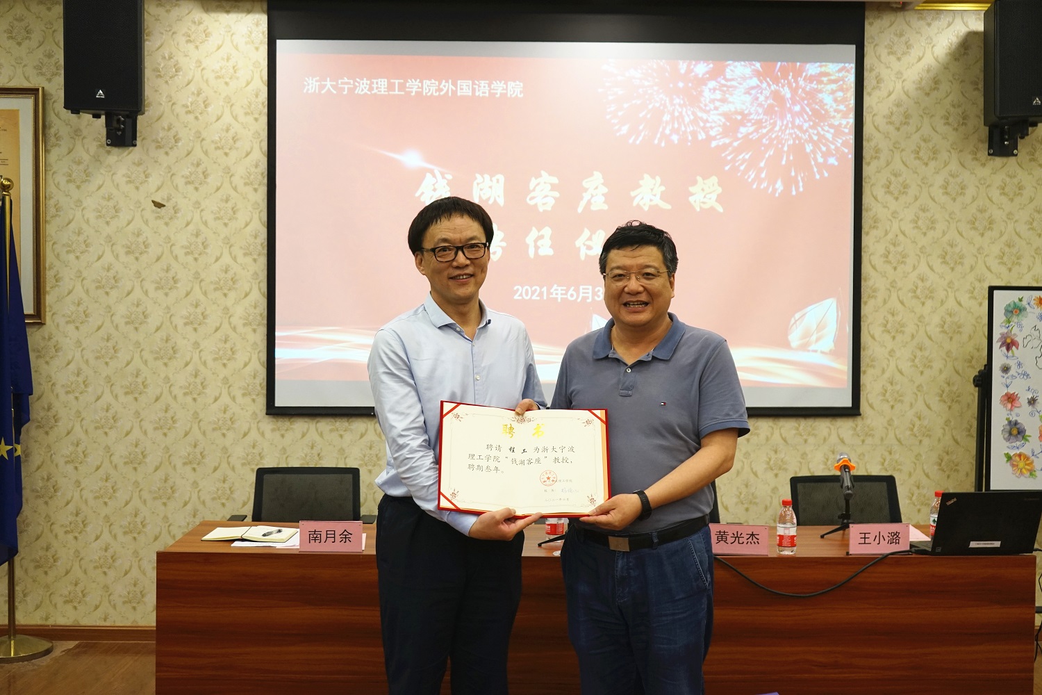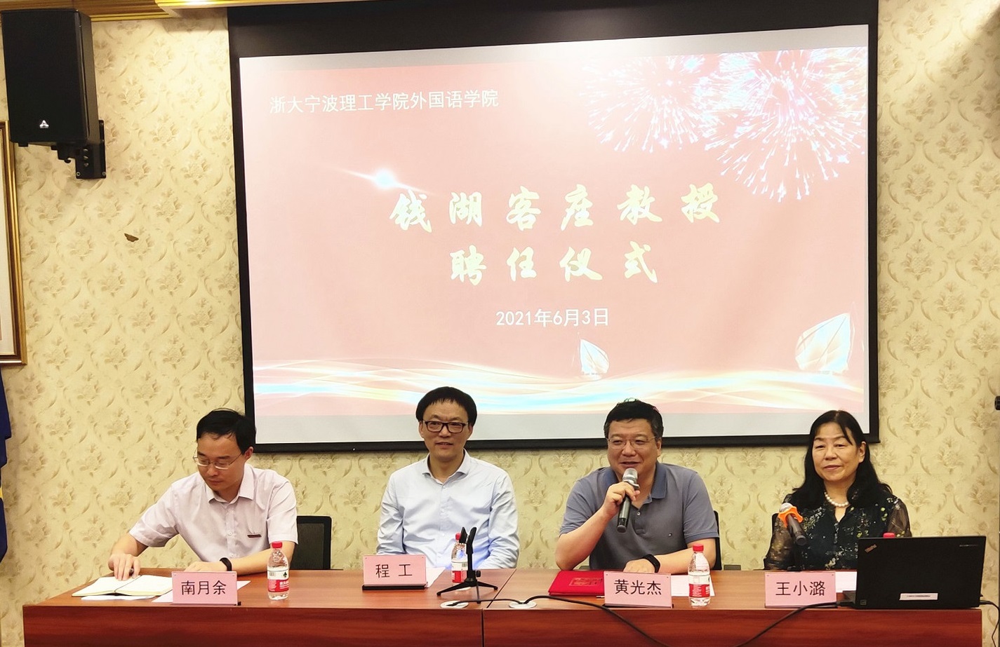 6月3日下午,程工“钱湖客座教授”聘任仪式在浙大宁波理工学院外国语学院SC106波兰研究中心举行。学校纪委书记黄光杰,人事处副处长南月余,学院领导班子和教师代表出席聘任仪式。会议由学院院长王小潞主持。