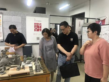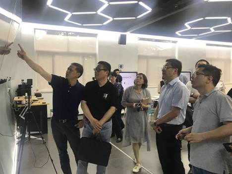 在浙江万里学院李凤副部长带领下,鲁东明及随行人员参观了浙江万里学院智慧教室,然后又到艺术学院参观数字媒体产教融合基地。