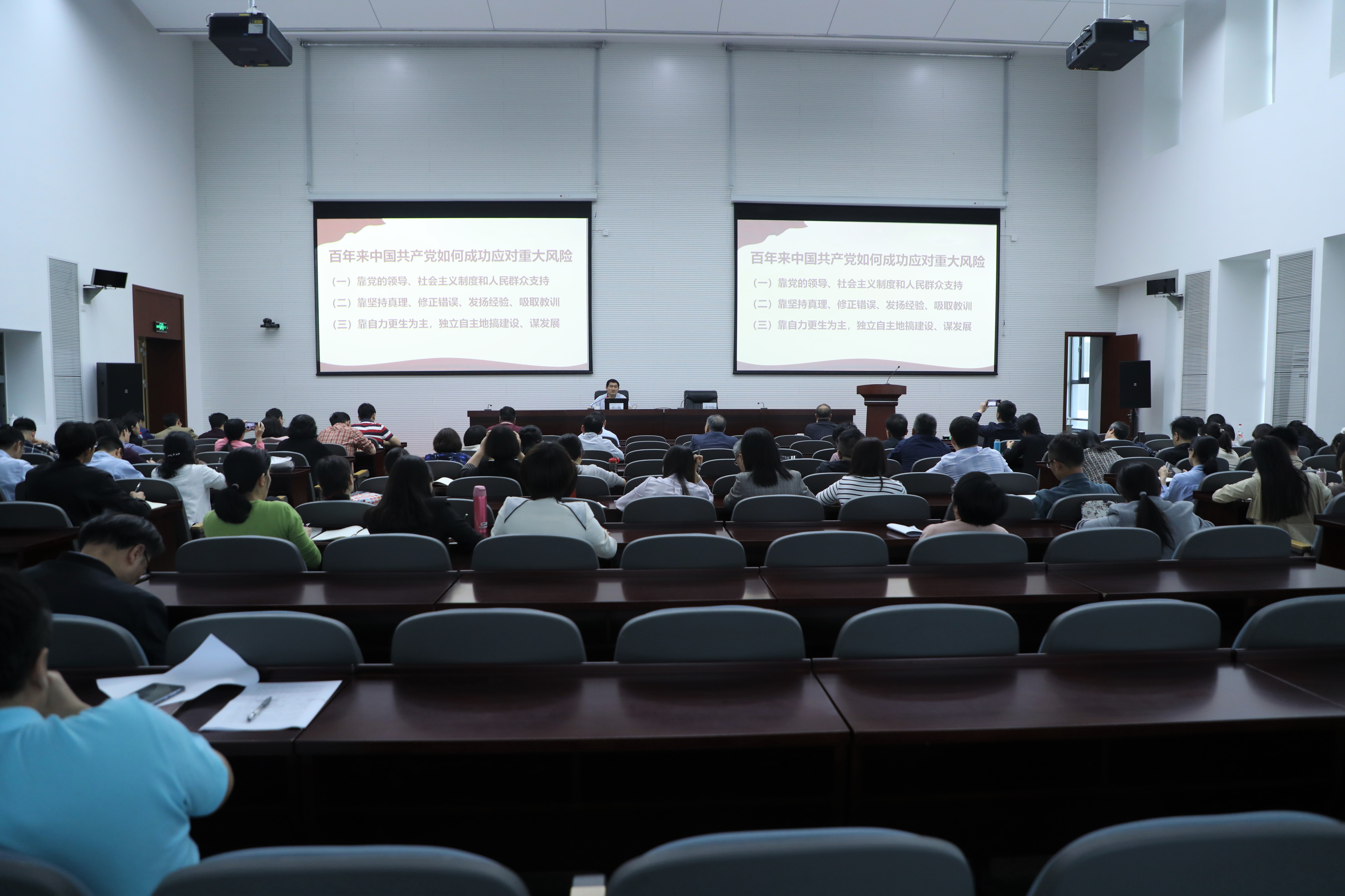 5月19日,学校党委理论学习中心组学习(扩大)会议暨党史学习教育专题报告会在学术交流中心405报告厅举行。南开大学马克思主义学院教授、博士生导师张健以“中国共产党百年奋斗历程中应对风险开创新局的历史经验”为题作辅导报告。学校党委副书记、党史学习教育领导小组副组长、领导小组办公室主任李凤旺主持报告会。