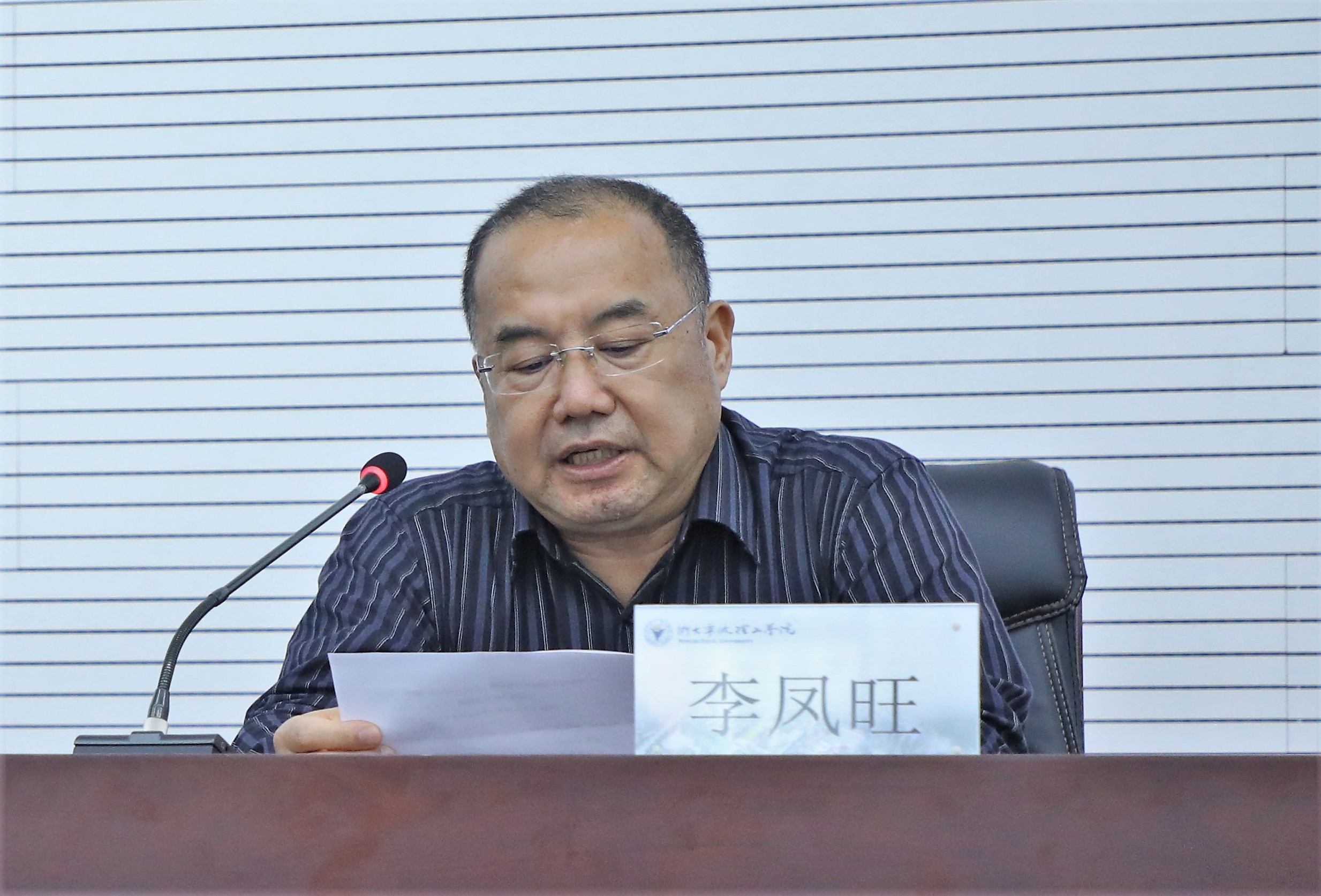 李凤旺在主持时强调,要从百年党史中汲取智慧力量,与学校发展实际联系起来,倍加珍惜来之不易的奋斗成果,居安思危,树立忧患意识,在学校新一轮建设发展中再接再厉,再建新功。