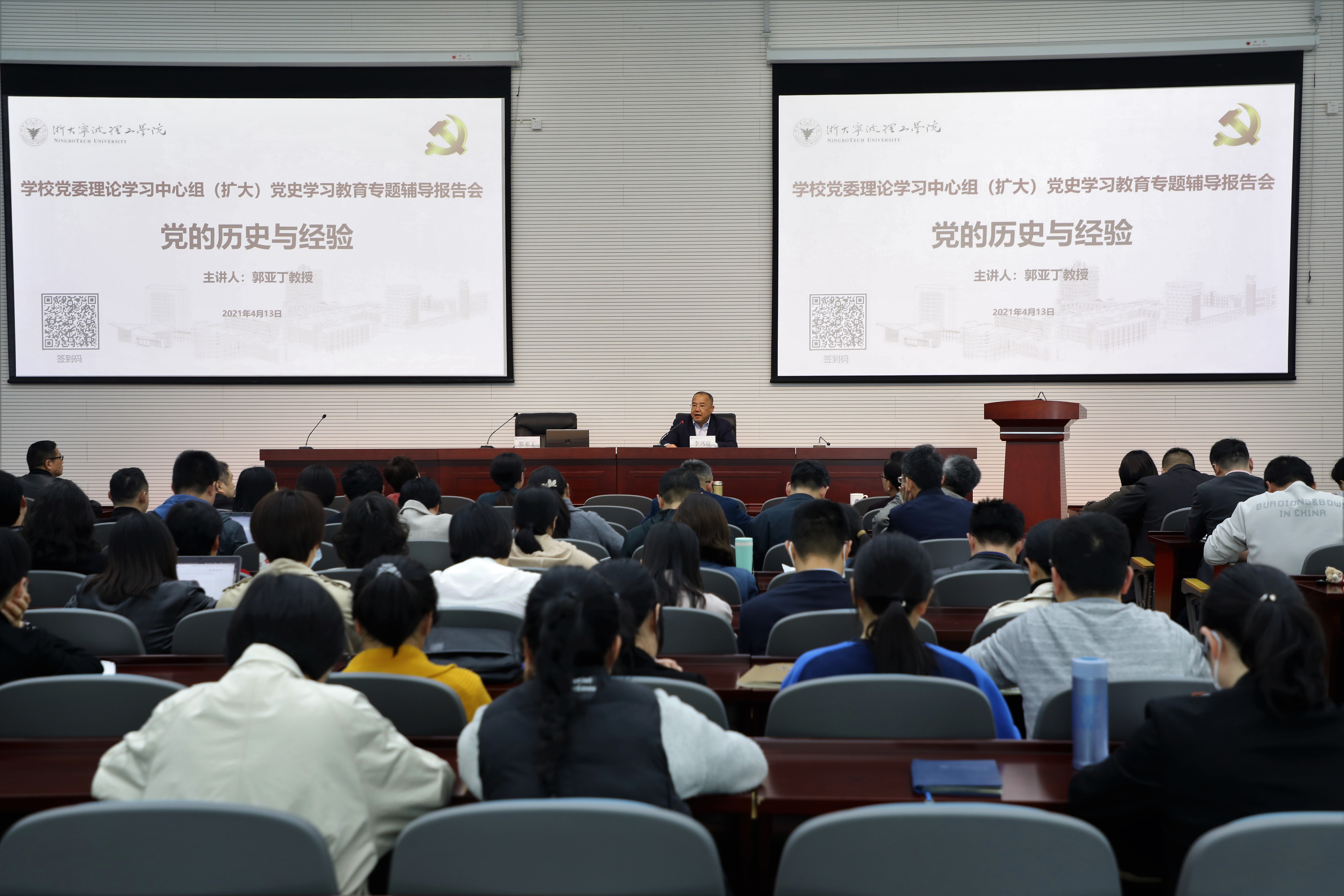 4月13日下午,学校党委理论学习中心组(扩大)党史学习教育专题报告会在学术交流中心举行。学校党委副书记李凤旺主持报告会,浙江省委党校郭亚丁教授来校作专题报告。