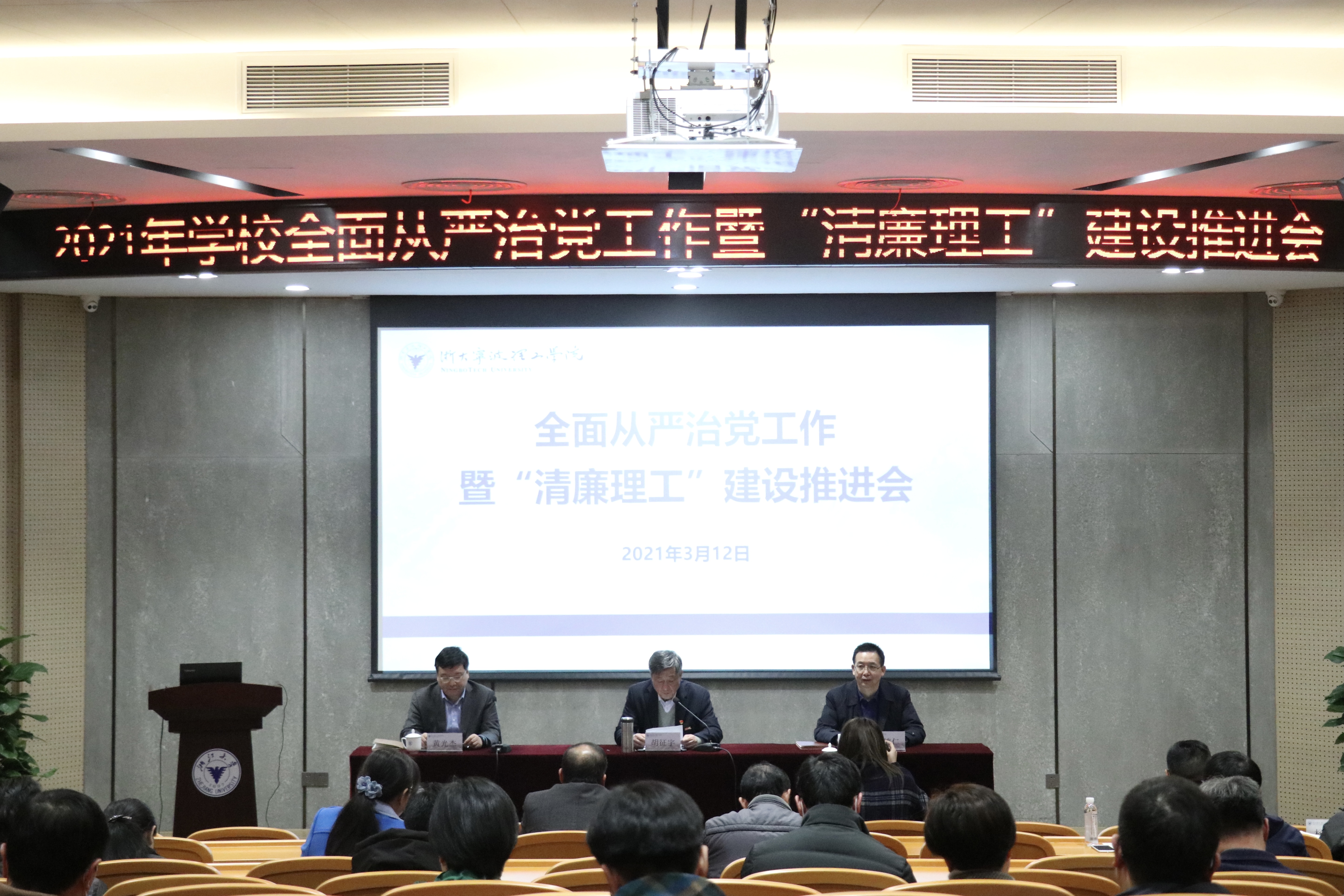 3月12日,学校在启新大讲堂召开2021年全面从严治党工作暨“清廉理工”建设推进会,深入学习贯彻党的十九届五中全会和十九届中央纪委五次全会精神,部署学校全面从严治党、党风廉政建设和反腐败工作,持续擦亮“清廉理工”建设品牌,为学校“十四五”开局各项建设展现新气象和走好“省内一流、全国百强”新征程的起步期提供坚强政治保证。