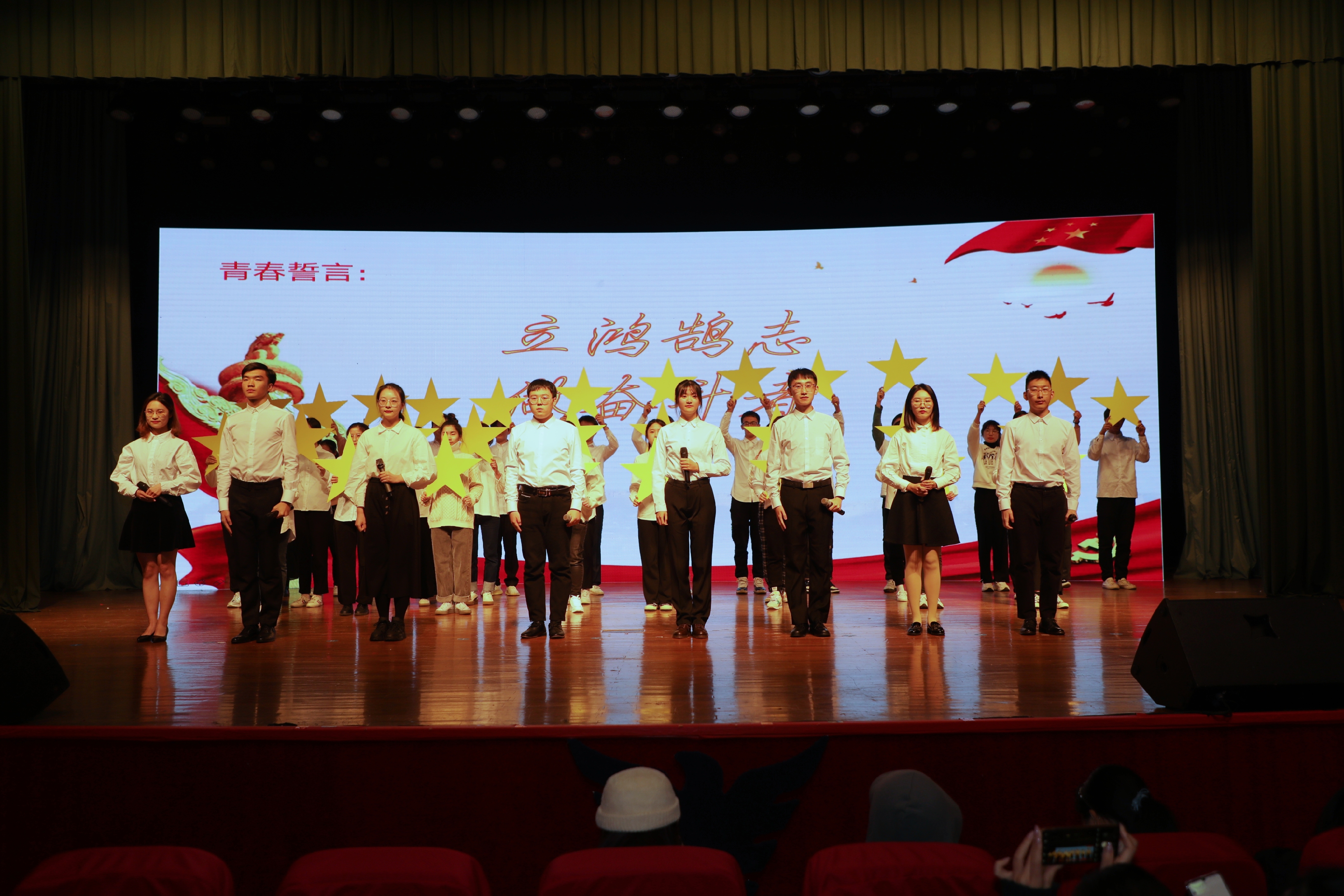 使命呼唤担当,榜样引领前行。篇章“榜样的力量”讲述了十位学生励志先锋用执着与坚持诠释自立自强、创先争优的奋斗之路,十位学生党员之星发挥先锋模范作用、牢记责任与担当的动人风采,十位十佳学生矢志奋斗、不负青春、全面发展的先进事例。由三项荣誉学生代表带来的诗歌朗诵激情澎湃、掷地有声,有理想、有担当的宣誓点燃了奋发热情。杨德仁为学生励志先锋和学生党员之星颁奖、绶带,并与“向荣教育基金”代表、土建学院王文军共同为十佳学生颁奖、绶带。