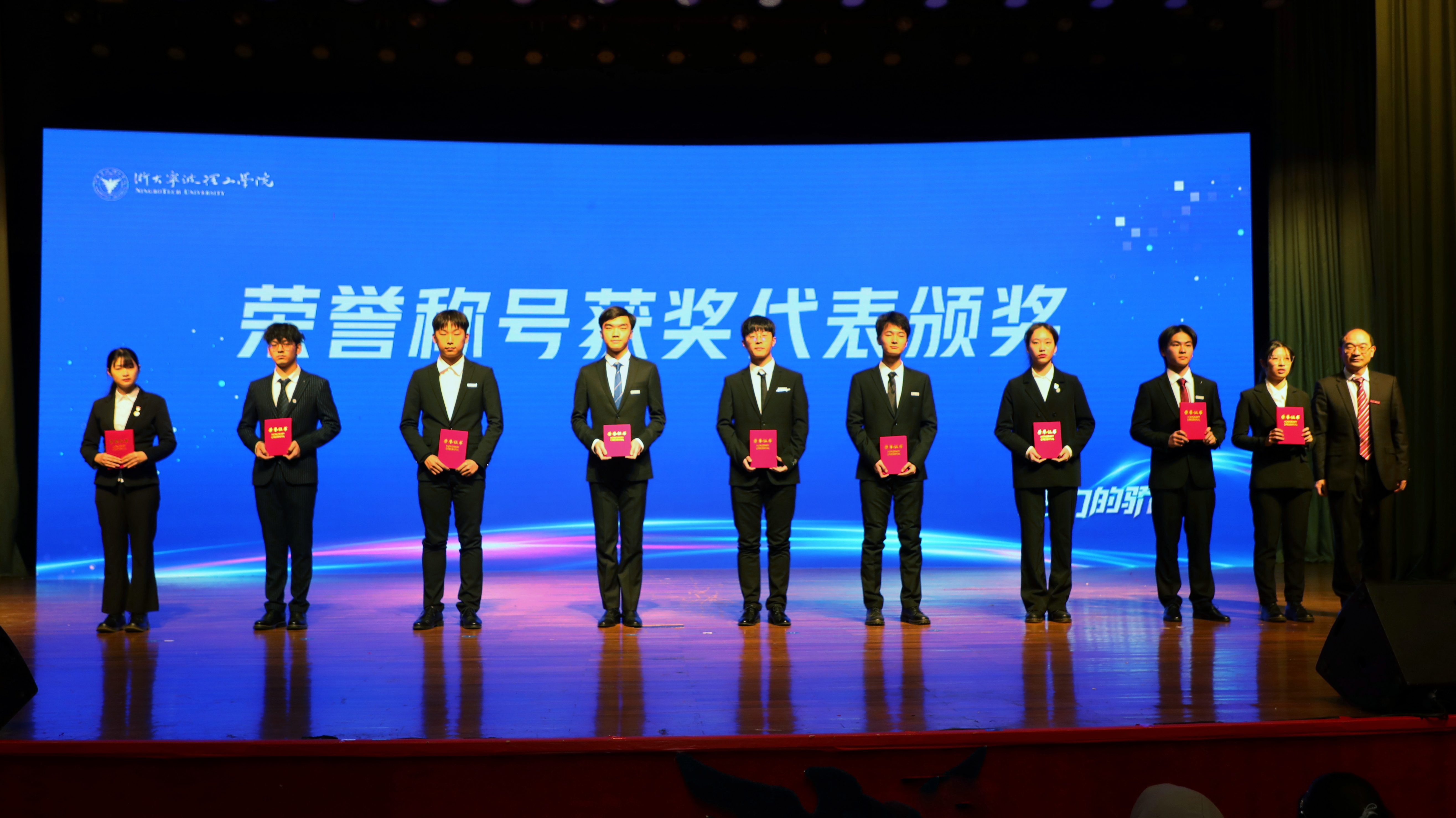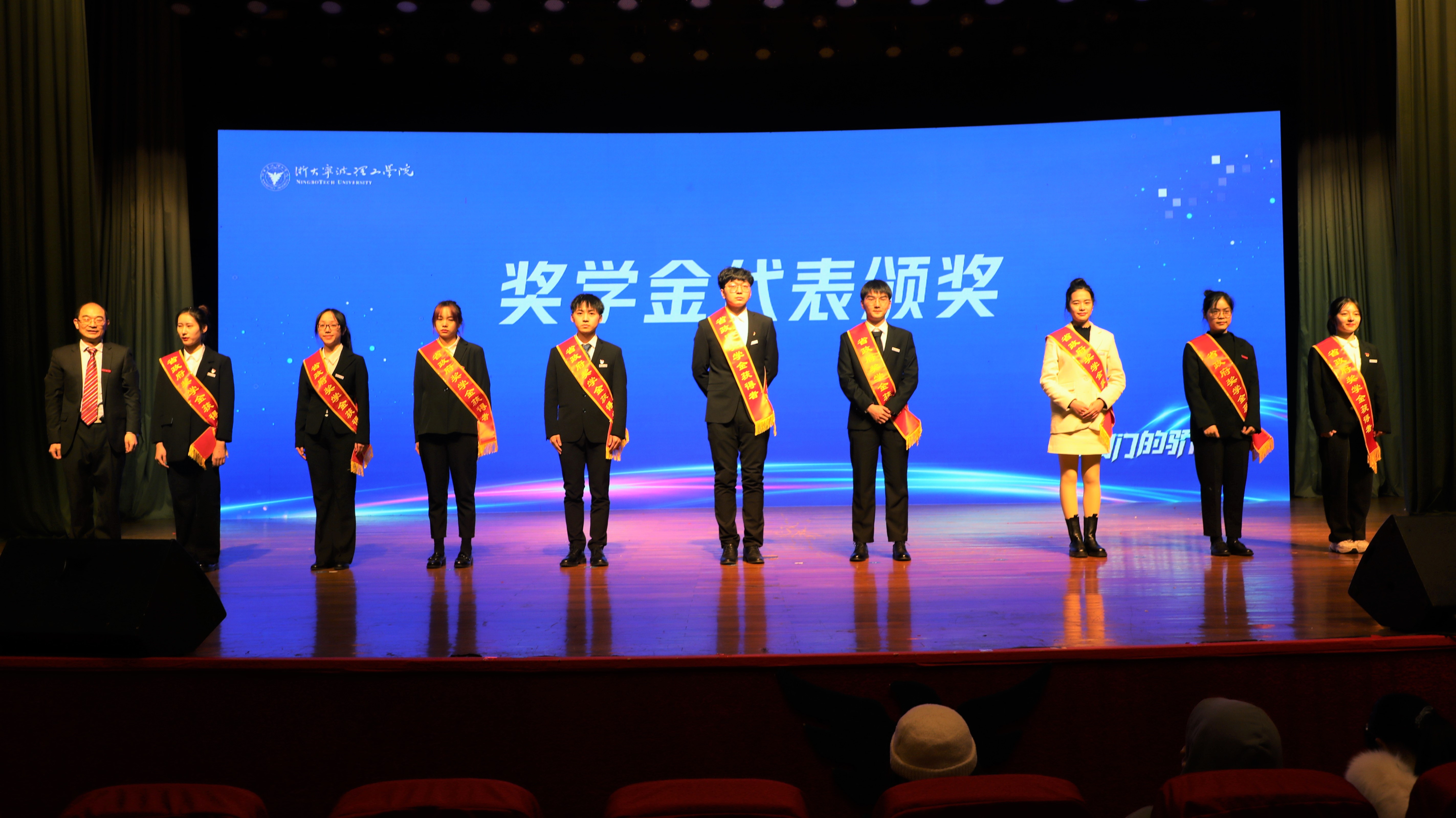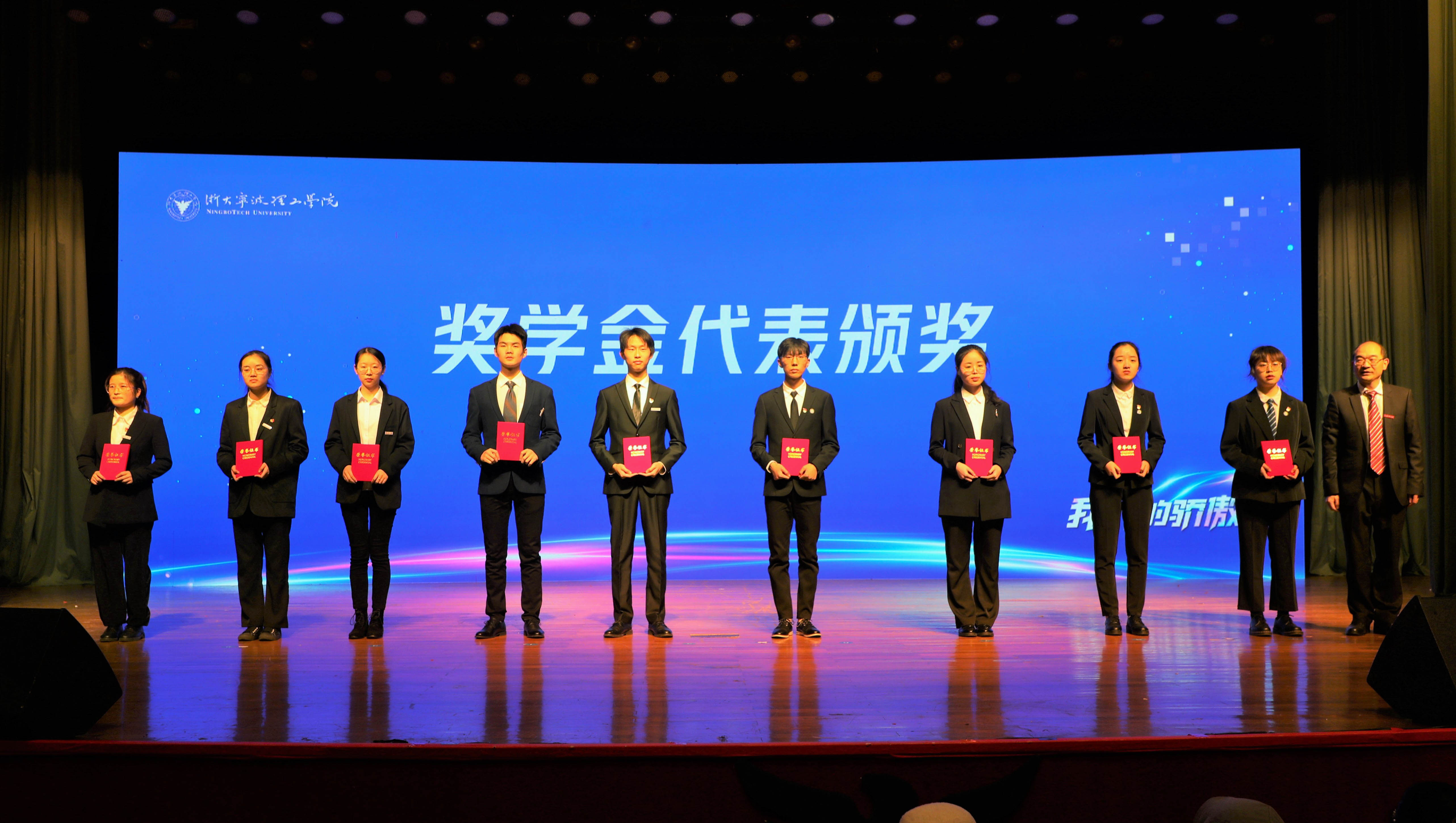 杨德仁向取得各项荣誉的同学们表示热烈的祝贺,并代表学校向莅临大会的企业家代表们表示欢迎和感谢。他向同学们提出三点希冀。立德,熔铸家国情怀。学校涌现出一大批“胸有家国情怀、勇担社会责任”的青年学子。希望大家坚定理想,勇担时代使命,把握时代脉搏,努力成为新时代弄潮儿。创新,练就扎实本领。同学们要学会质疑,学会提问,善于独立思考,在浙大宁理学会创新意识、创新思维、创新能力,为实现人生梦想增添有力翅膀。奋斗,书写青春华章。学校不乏学以致用、不怕困难、奋斗不止的优秀代表。希望大家珍惜韶华、不负青春,努力学习知识,锤炼过硬本领,在奋斗中书写青春华章。学校吹响了拉高标杆、争创一流的号角,希望每一位浙大宁理学子,以梦想为航向、以榜样为力量,坚持学习、增加技能、不断创新,与学校共同进步成长,为学校再创辉煌添砖加瓦。