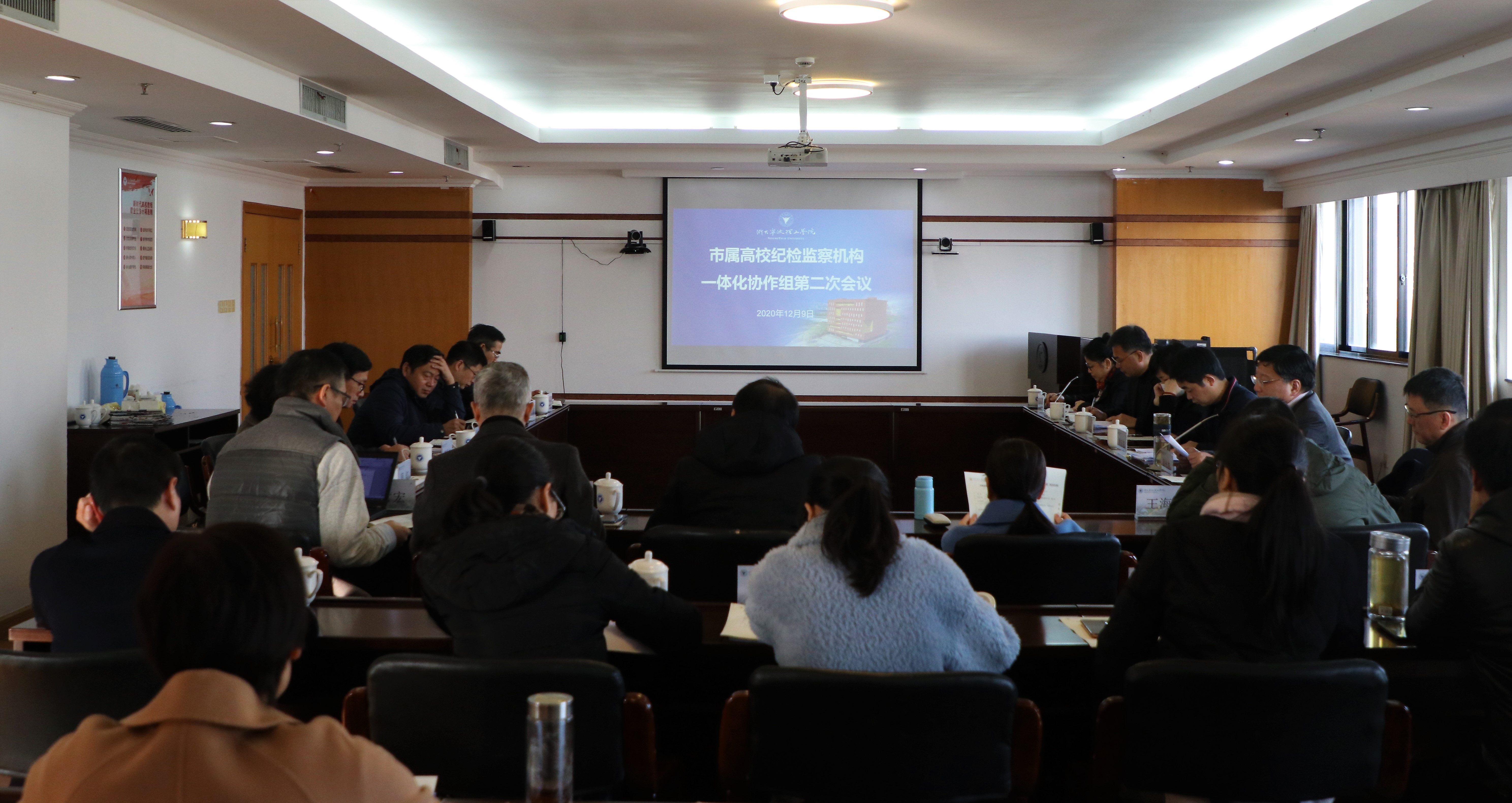 12月9日,市属高校纪检监察机构一体化协作组第二次会议在我校召开。市纪委五室副主任曾宏杰,驻市教育局纪检监察组组长陈小兰、副组长龙沪融,协作组8所高校纪委书记、副书记和纪检监察室主任、副主任等参加会议。