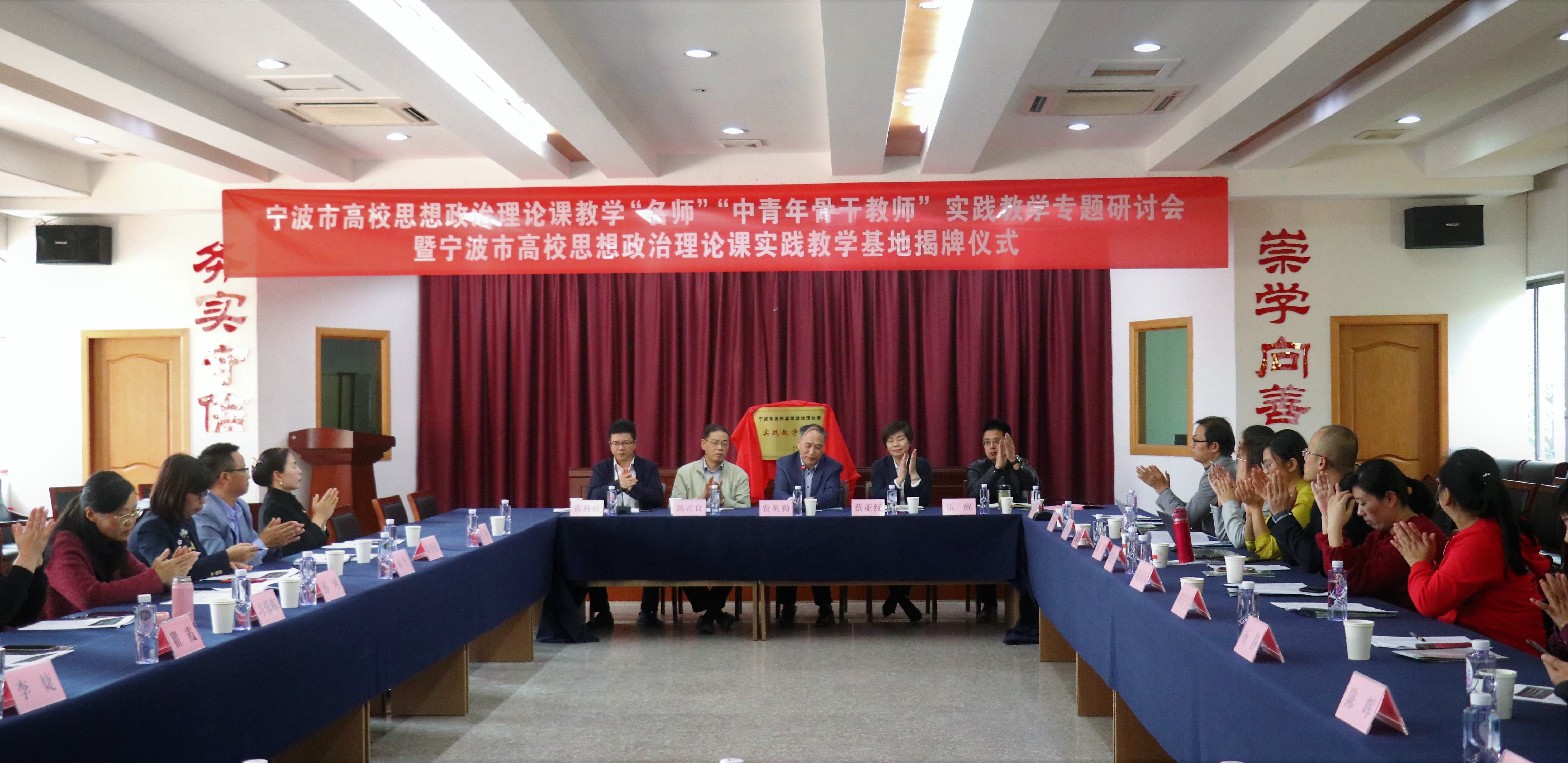 仪式结束后,参会教师还进行了宁波市高校思想政治理论课教学“名师”、“中青年骨干教师”实践教学专题研讨活动。通过主旨发言与交流发言,参会教师就高校思政理论课实践教学建设、改革以及红色教育资源的利用与开发等方面开展充分的交流讨论。当天,全体人员还参观了横坎头村新时代文明实践站,共同重温习近平总书记给横坎头村全体党员同志的回信。