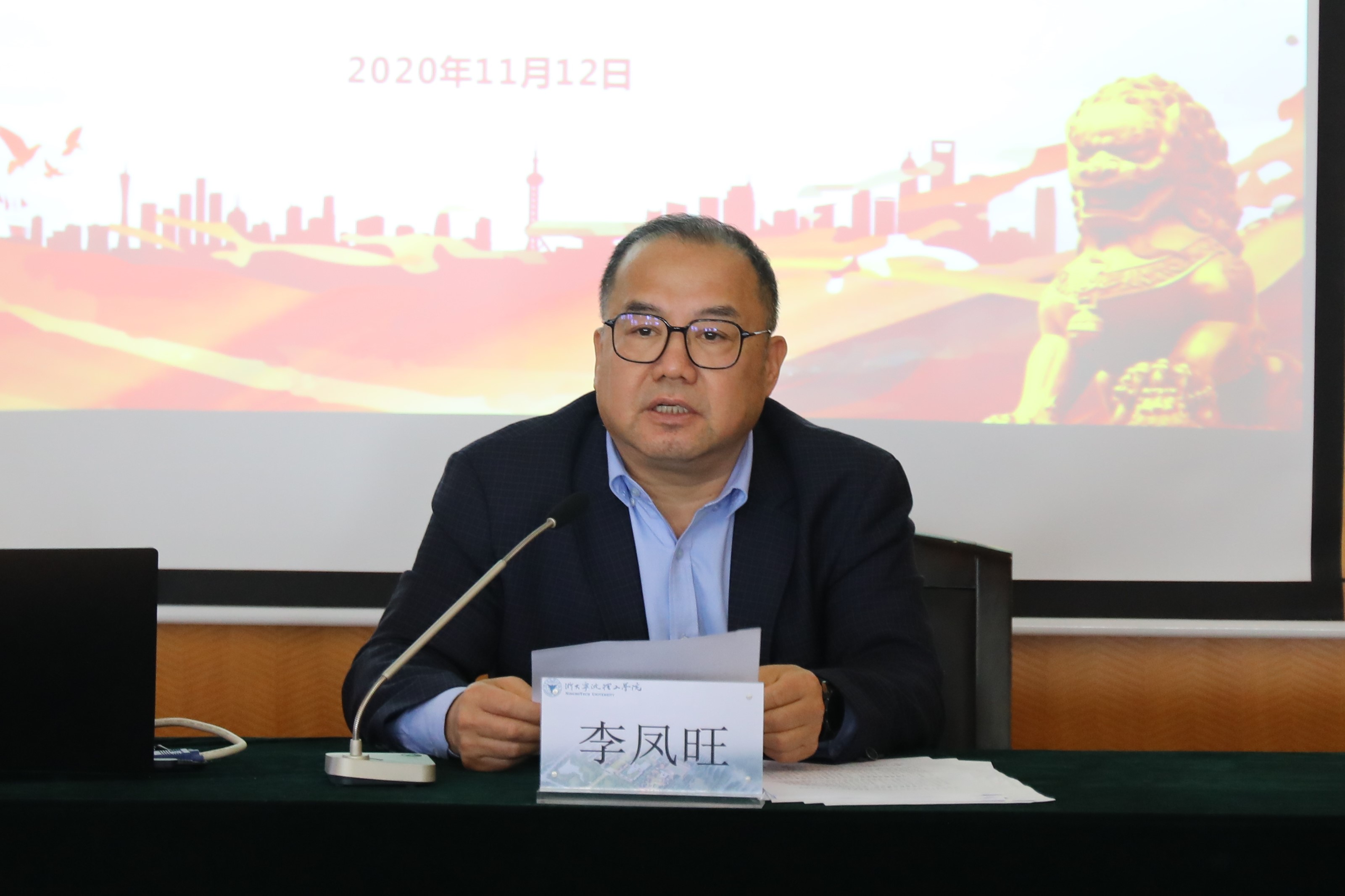11月12日上午,浙大宁波理工学院召开党委理论学习中心组学习(扩大)会议,传达学习党的十九届五中全会精神。党委书记胡征宇主持并讲话,党委副书记李凤旺传达中央宣讲团成员、中央政法委秘书长陈一新来浙宣讲十九届五中全会精神时的主要内容。学校理论学习中心组成员、院级党组织负责人、机关和直属单位负责人、全体马克思主义学院教师及辅导员等参加学习会。