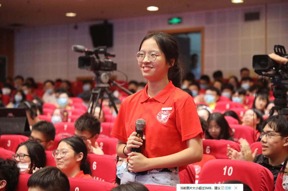 在交流中,同学们积极踊跃提问:“杨校长,我们该如何脱离传统的拘束,提高创新能力?”“作为2020级专升本的新生,如何在课程安排很满的情况下锻炼创新能力?”“工科学生要怎样接触到创新的前沿?”