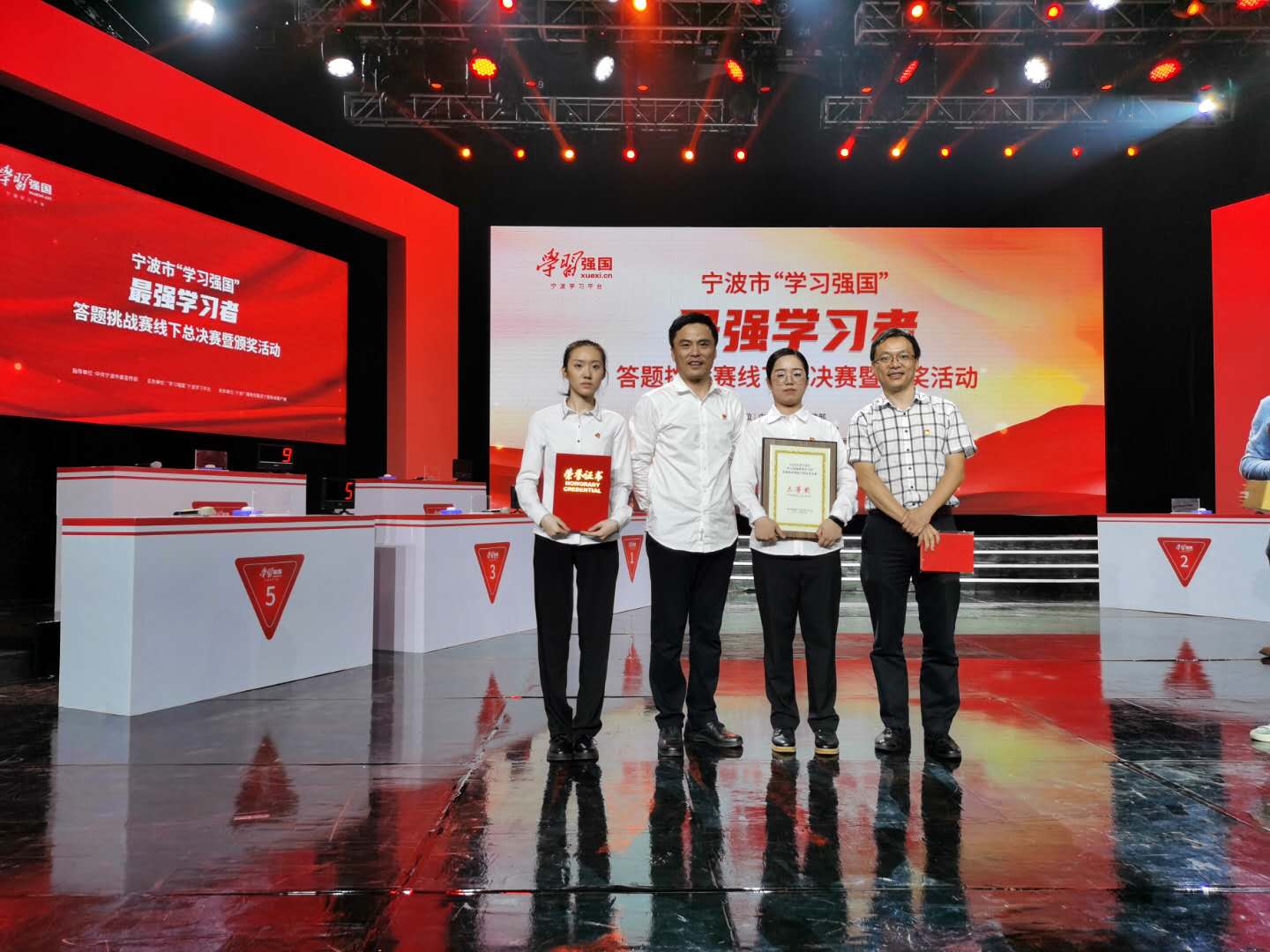 9月28日下午,由中共宁波市委宣传部、“学习强国”宁波学习平台联合宁波广电集团宁聚新闻客户端重磅推出的“学习强国”最强学习者答题挑战赛线下总决赛在宁波电视台举行。生物与化学工程学院教师楼文军,商学院学生吴乐乐、林佳代表浙大宁理参加团体赛并荣获三等奖,学校被授予优秀组织奖荣誉称号。宁波广电集团宁聚新闻客户端对本场活动进行了全程直播。