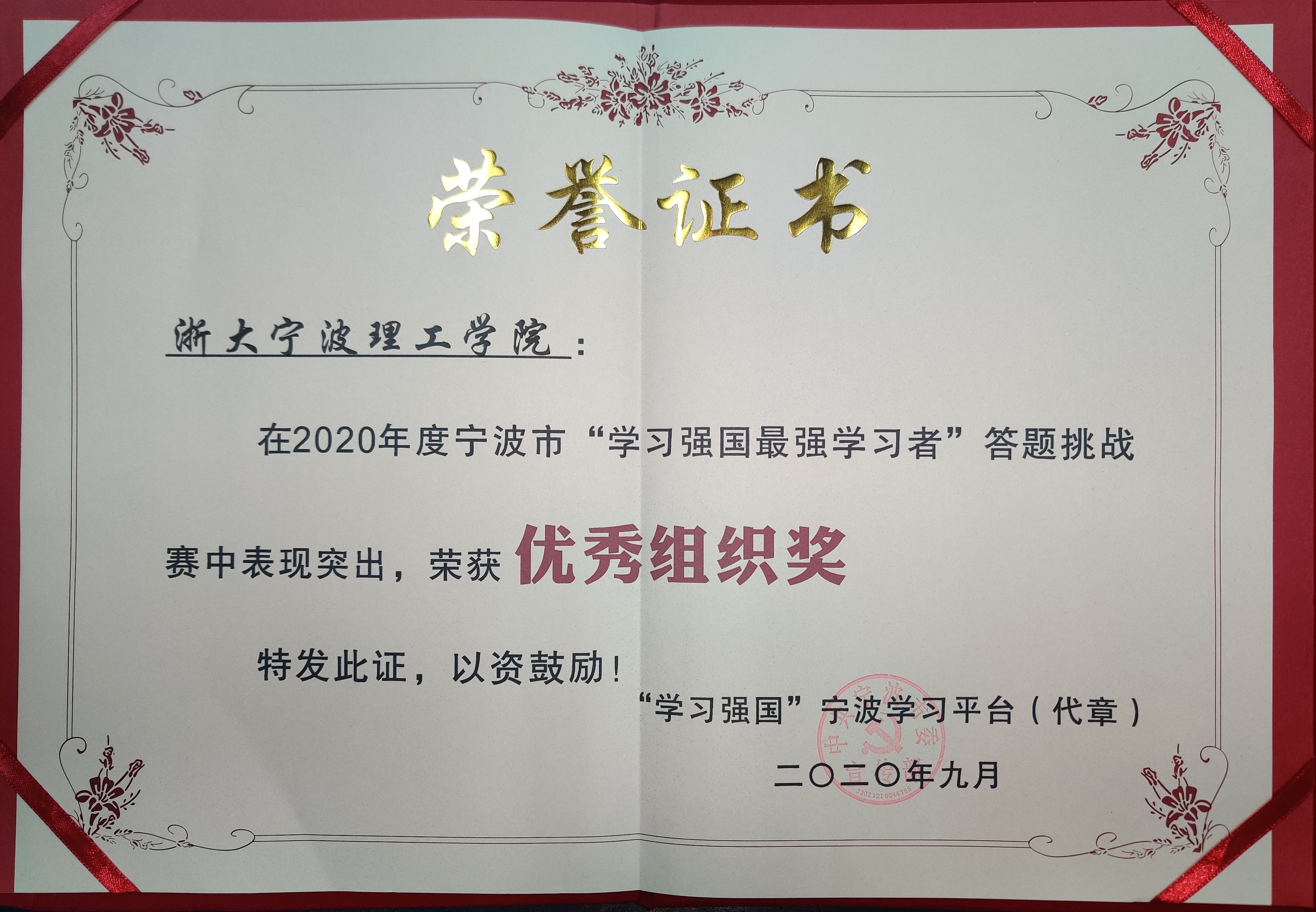 据悉,为提高广大“学习强国”宁波学员的学习热情,展现宁波学员的学习风采,2020年6月19日起,中共宁波市委宣传部、“学习强国”宁波学习平台联合宁波广电集团宁聚新闻客户端重磅推出“学习强国”最强学习者答题挑战赛,8期线上比赛至8月12日落下帷幕。学校党委高度重视并召开专题部署会,在党委宣传部的号召下,各二级党组织精心组织,广泛发动党员师生参与每一期挑战赛。学校每期入围“先锋旗帜榜”,在校内掀起了一股师生学习的热潮。