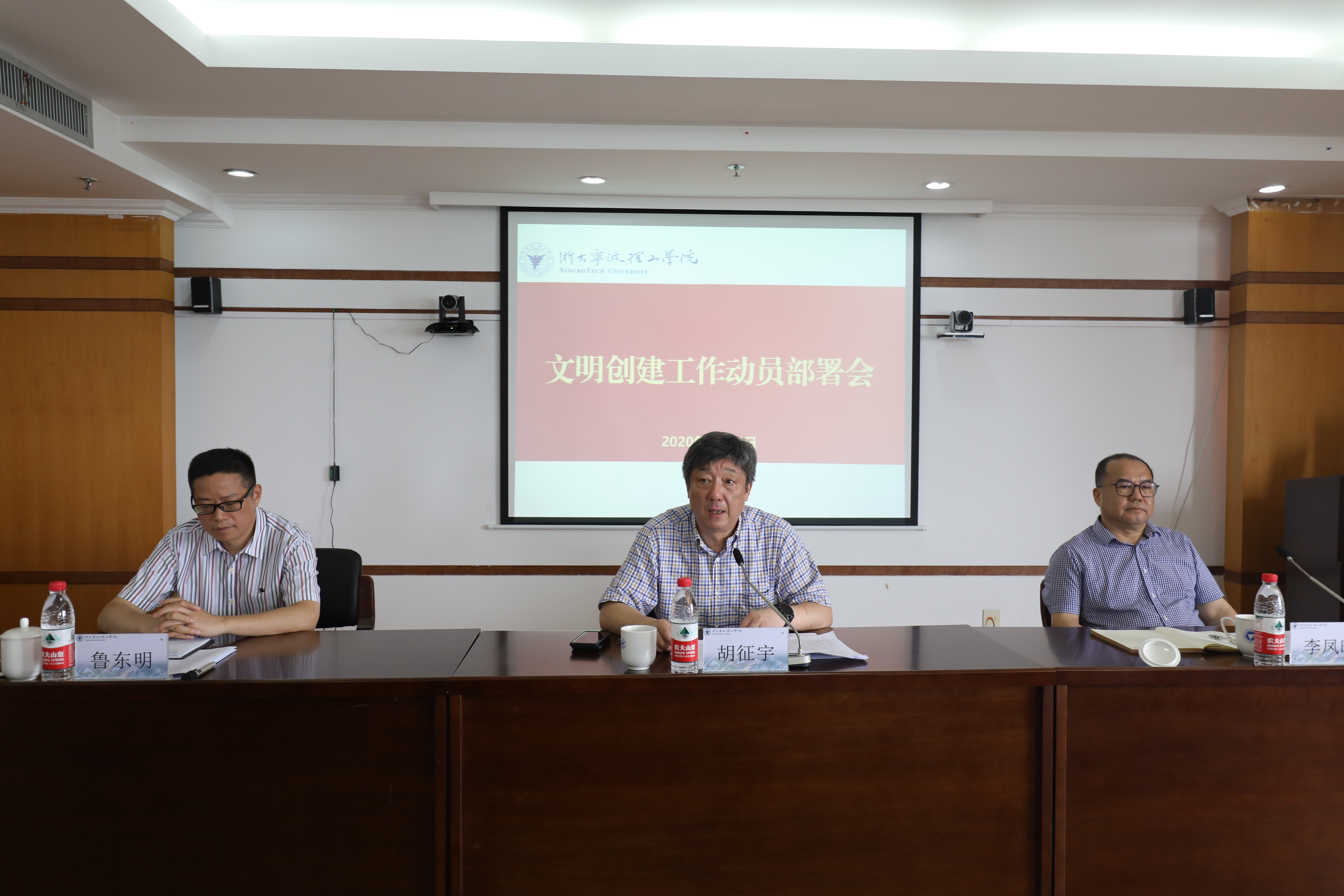 为深化文明校园建设,助力宁波争创全国文明城市“六连冠”,6月24日上午,学校在行政楼606召开文明创建工作动员部署会。党委书记、文明校园建设领导小组组长胡征宇作动员讲话,党委副书记、领导小组副组长李凤旺主持会议并作工作作部署,副校长、领导小组副组长鲁东明,以及领导小组成员单位负责人、各二级单位主要负责人参加会议。