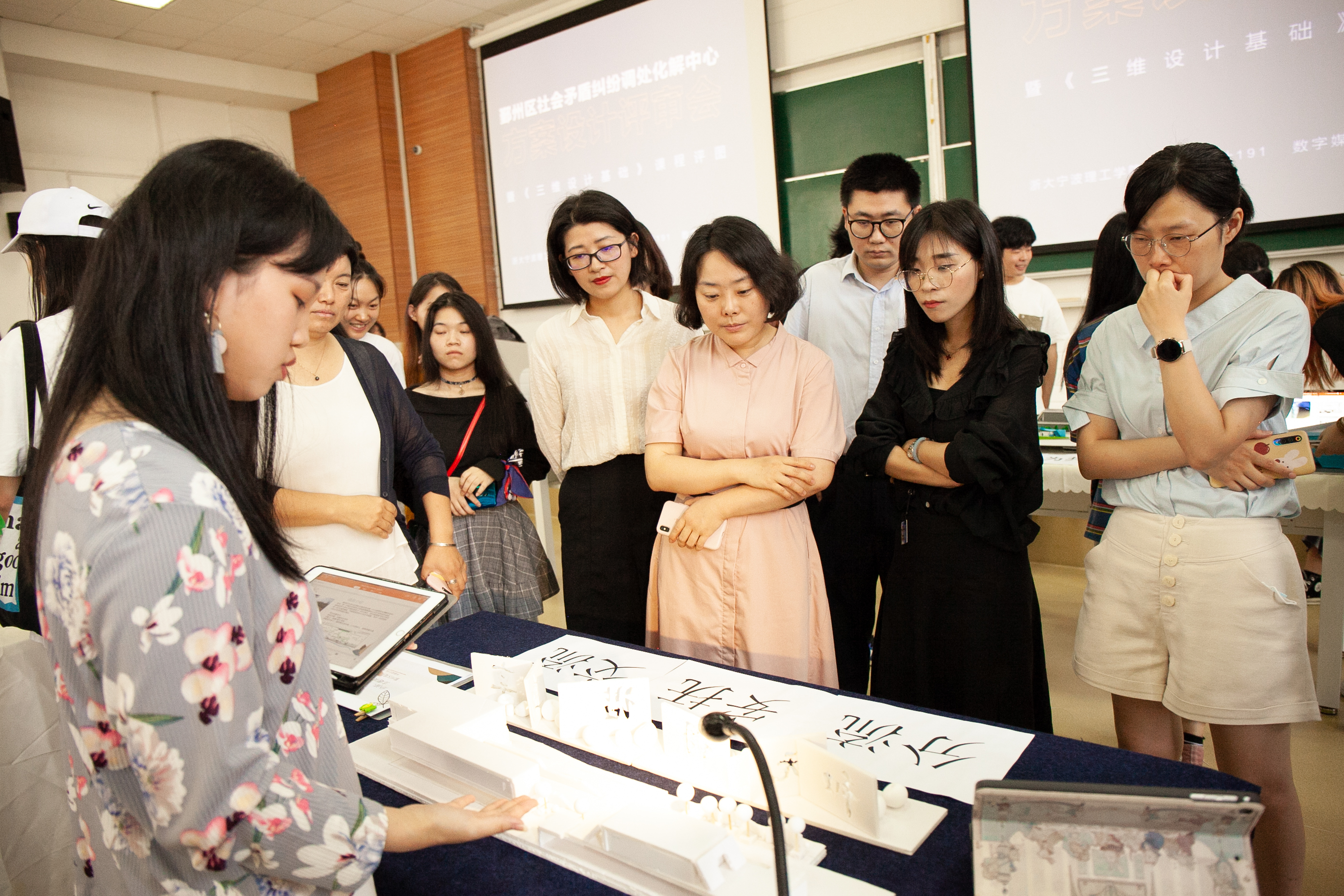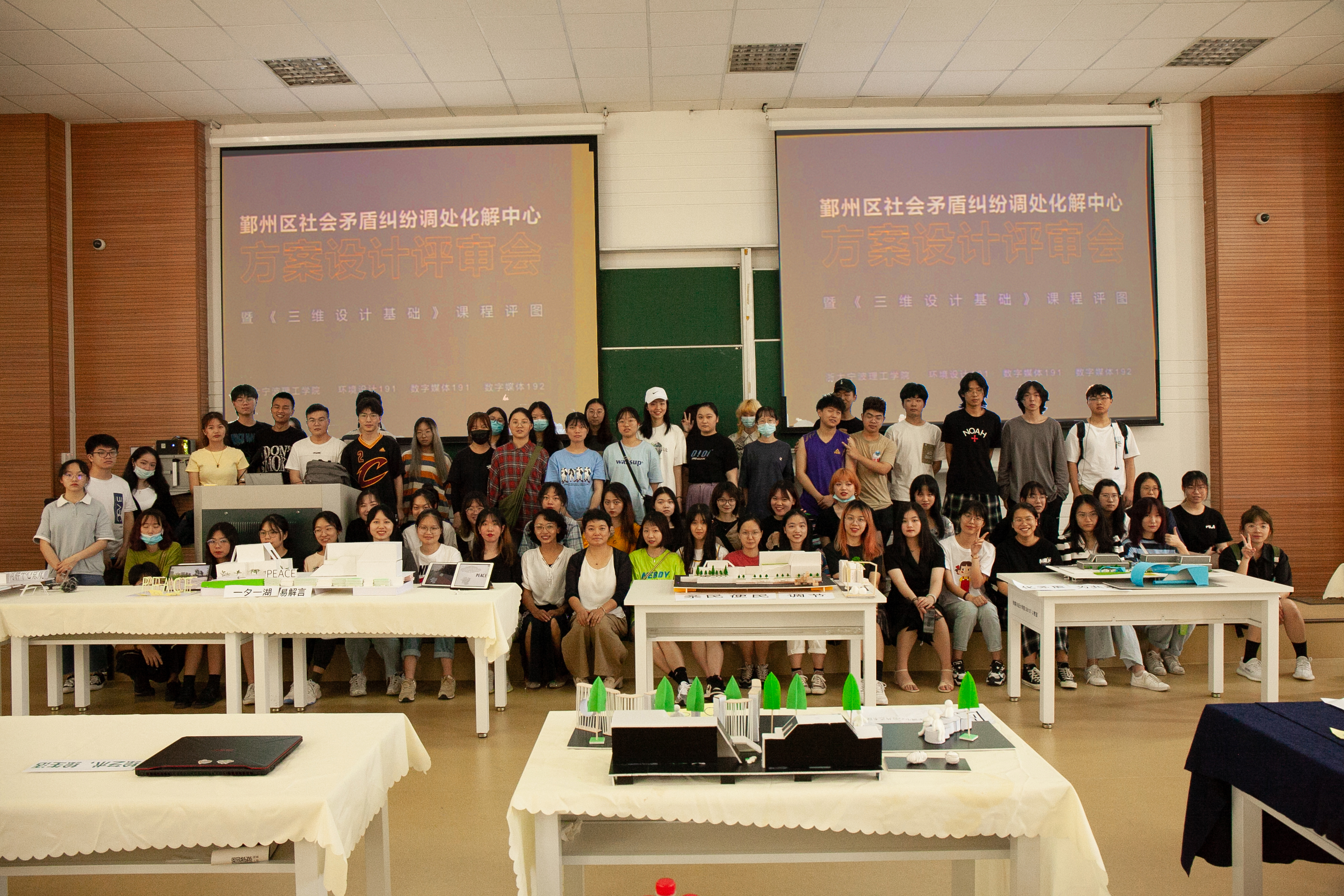 6月17日上午,学校设计学院与鄞州区政府合作项目“鄞州区社会矛盾纠纷调处化解中心景观更新项目”实践课《三维设计基础》课程评图会在SB102召开。鄞州区社会矛盾纠纷调处化解中心杨淑英主任一行5人,学校设计学院相关教师共同为参与课程的同学打分、评图。