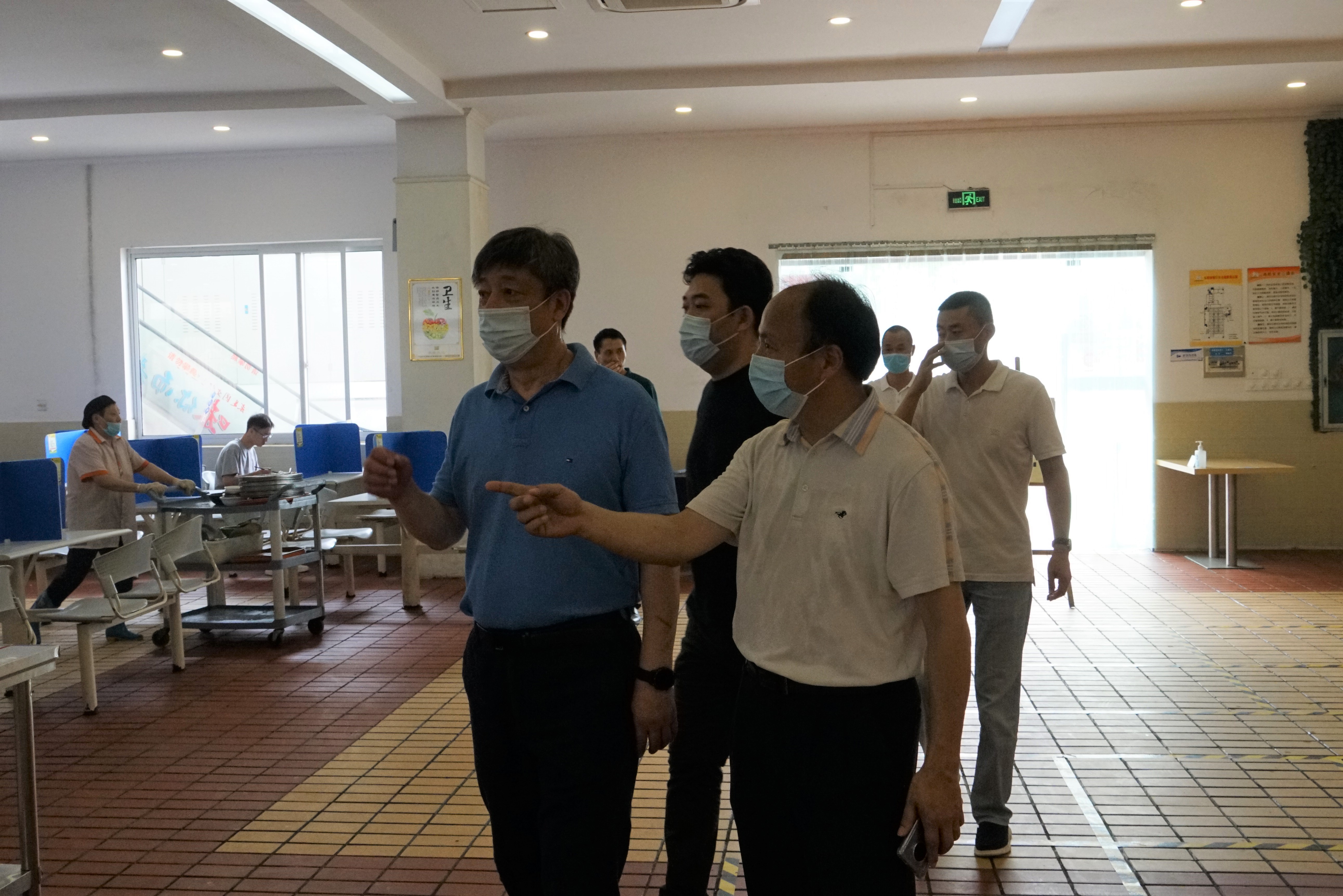 在图书馆,胡征宇深入了解了图书馆人员进出管理情况,指出要根据流量高峰的不同,合理配备入馆查验力量;在生活园区,胡征宇检查了超市的防控情况,及时纠正了超市人员不戴口罩上岗的违规行为;在学生公寓,检查了部分学生宿舍的卫生情况,强调要在学生宿舍中大力开展爱国卫生运动,做好生活垃圾分类,在学生中积极倡导并养成良好的卫生习惯;在学校集中健康观察点,胡征宇与值班室保安和服务人员进行了深入交谈,细致了解了观察点的学生生活情况,叮嘱大家要为进行健康观察的学生提供周到服务,及时解决他们的困难,及时做好心理疏导工作;胡征宇还实地察看了食堂就餐场所环境消毒情况。