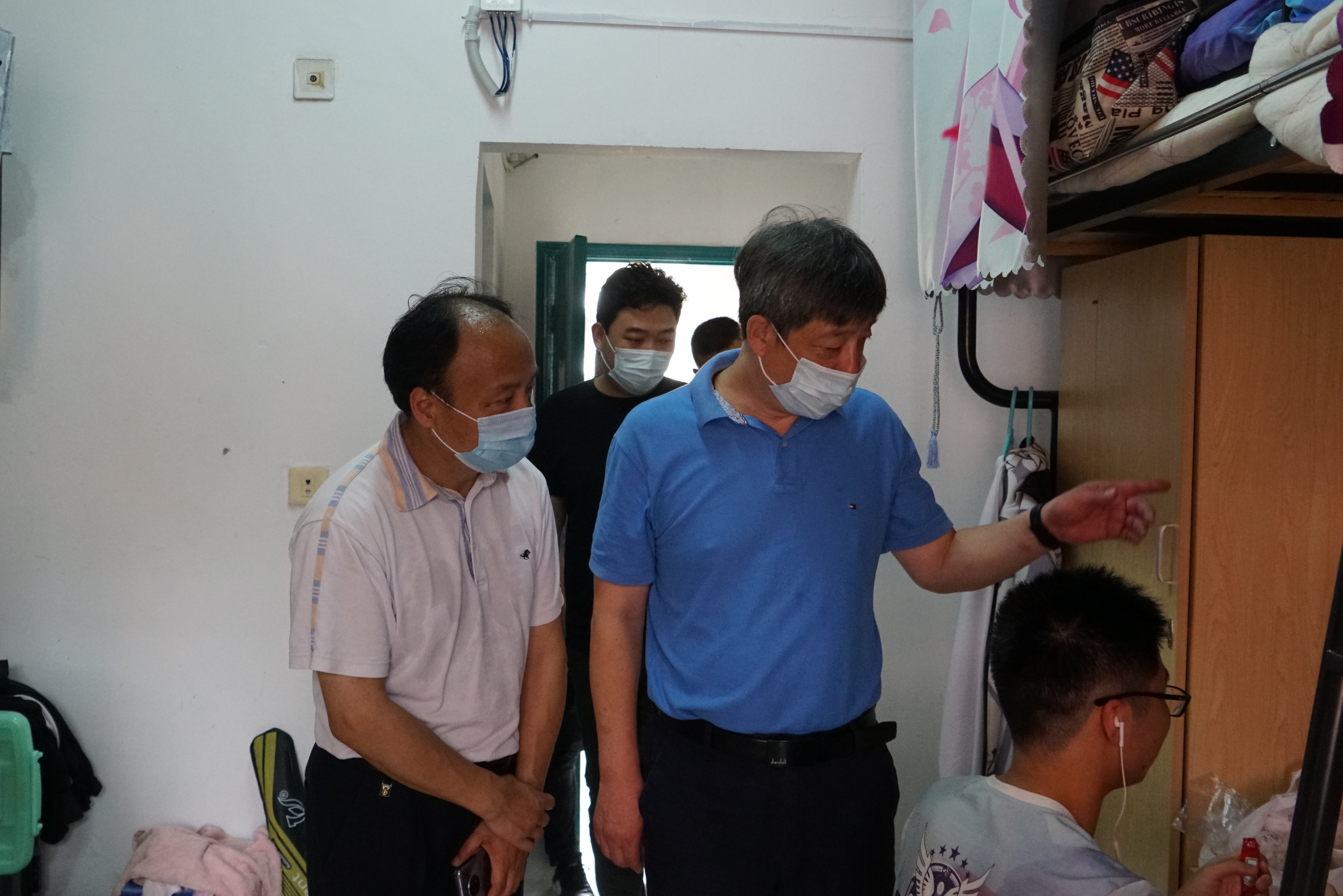 6月16日上午,党委书记胡征宇走访校门、图书馆、生活园区,实地检查我校疫情防控常态化工作落实情况。