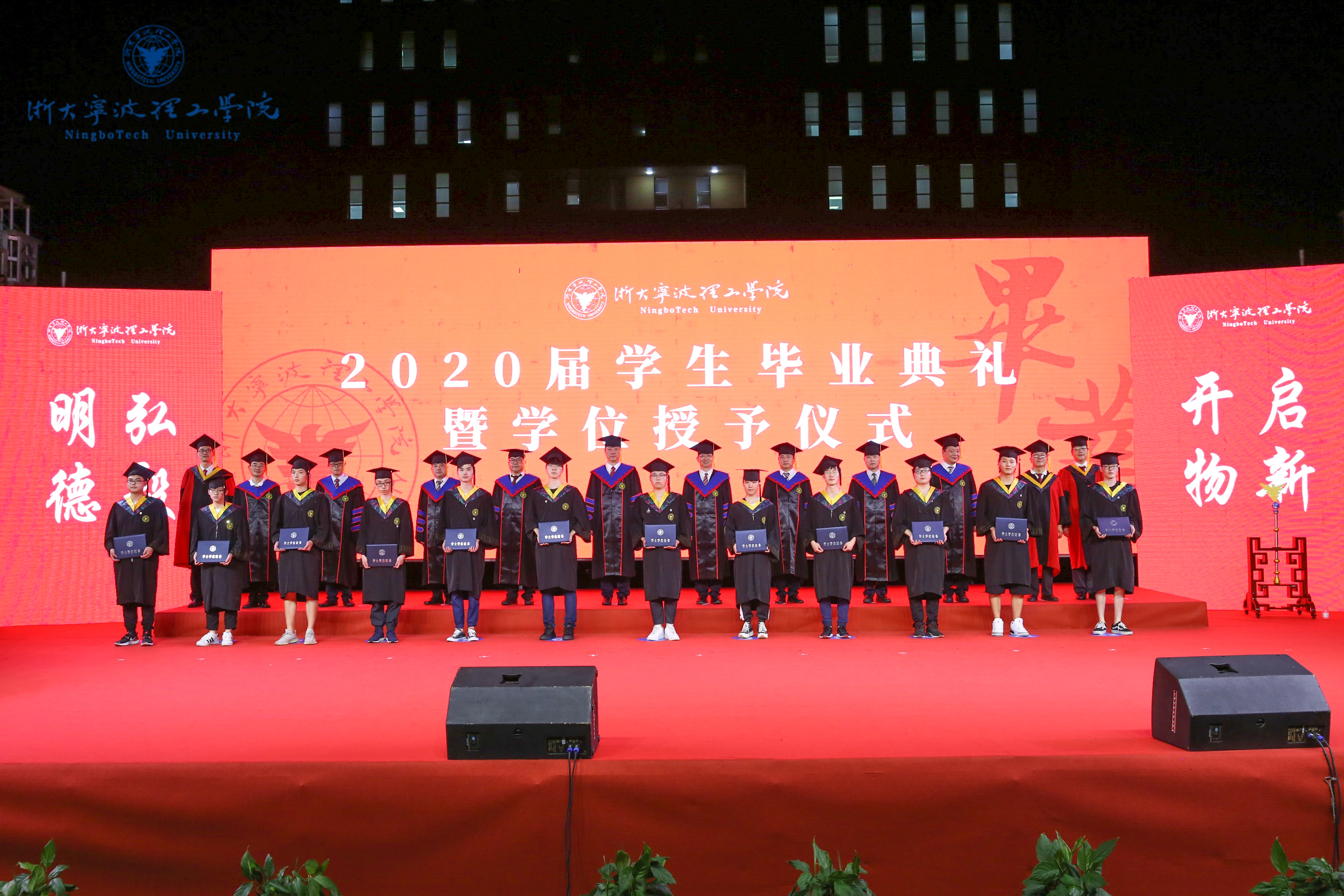 党委副书记冯建波主持毕业典礼。副校长鲁东明宣读2020届毕业生、优秀毕业生名单和授予学士学位学生名单。主席台嘉宾与老师向毕业生颁发证书,送上毕业纪念。