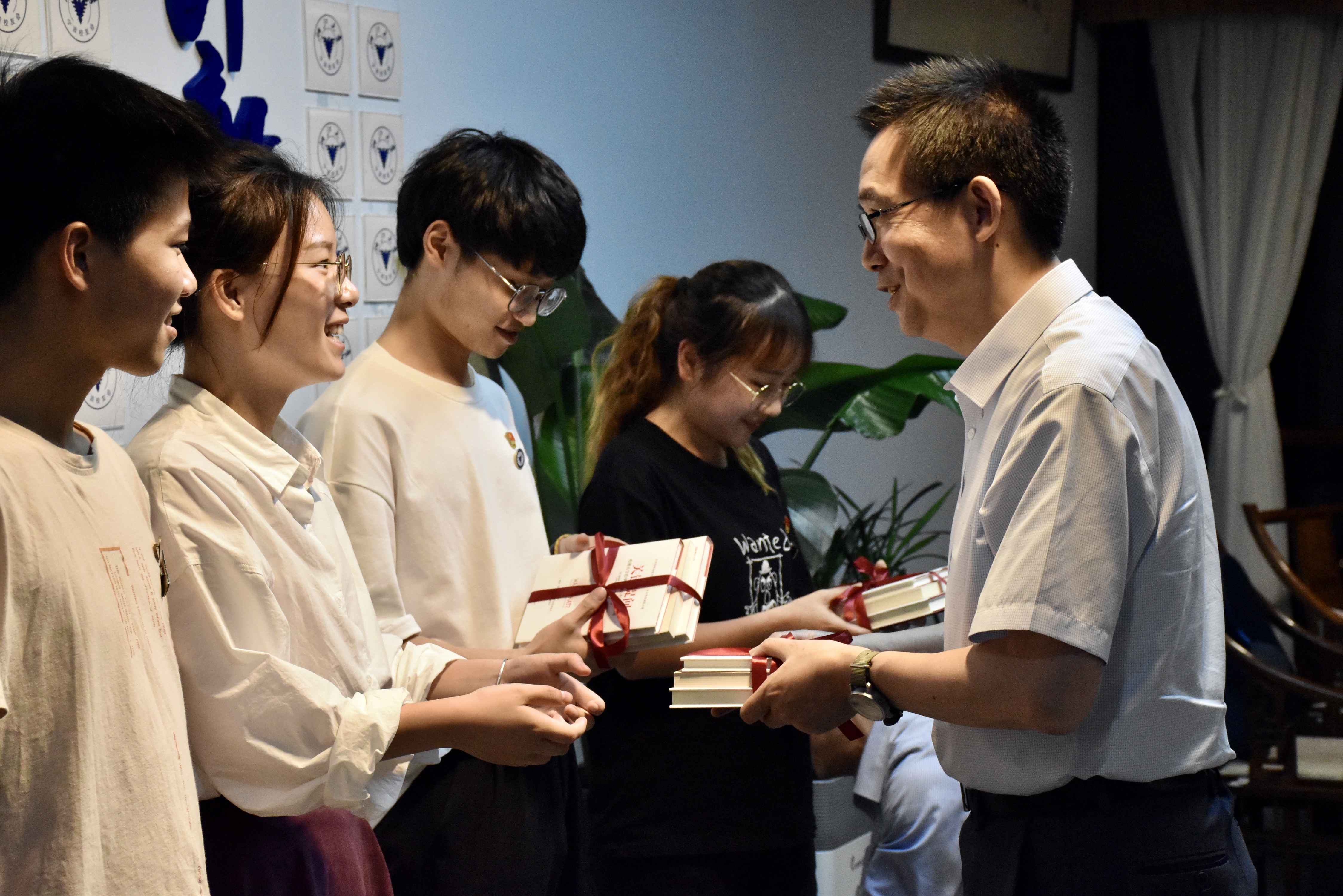 座谈尾声,杨德仁校长还向每位同学赠送了带有签名寄语的《未来三十年》、《关键提问》和《经典常谈》三本书,希望同学们在步入社会后,敢为人先、矢志奋斗,既要成为“善于发现问题、勇于正视问题、有效解决问题”的能人智者,也要争做“潜心做事、用心做人”的有为青年。