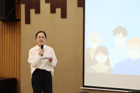 来自第一课堂和第二三四课堂的15组团队参加了现场决赛,300余名课程学生在线收看了比赛。各参赛团队代表们结合中国战“疫”实践,从战“疫”中的制度力量、精神力量、群众力量、科技力量等角度依次上台进行宣讲。沈周元同学将中国制度比作教科书,用一个个具体事例坚定表达了对中国制度的自信。李婧倩同学在宣讲中讲述疫情下最美逆行者的故事,着重凸显出中国青年战疫情中表现出来担当精神。经过激烈角逐,最终,邵曼茜等3名同学荣获比赛一等奖,侯纪晨等5名同学荣获二等奖,方严等7名同学荣获三等奖。