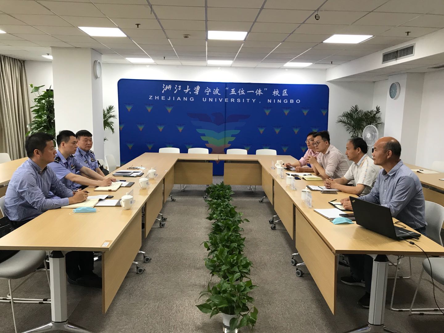 5月26日上午,宁波市公安局反诈中心主任刘益、警官张永斌,宁波团市委童周亮到校评估“无诈校园”创建工作情况。学校党委副书记冯建波,宣传部、保卫处、团委相关人员参加评估会。