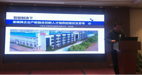 宁波合力模具科技股份有限公司技术总监刘永跃高级工程师做了智能制造下某模具企业产教融合创新人才培养的现状及思考,对深入开展产教融合,从合作企业角度,人才培养的诉求。