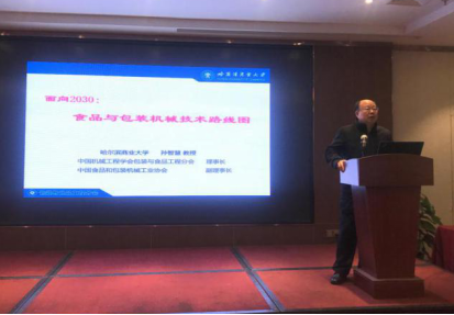 哈尔滨商业大学大学教务处处长、博士生导师孙智慧教授做了《面向2030:食品与包装机械技术路线图》的报告,从战略层面解读了政府、高校、企业对食品与包装机械行业合作的供求关系。