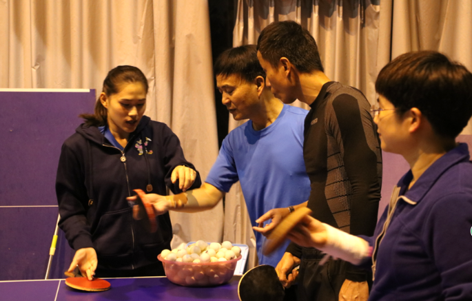 本次活动由校工会统筹安排,办出多个亮点及创新举措。一是培训教练员水平高、名气大。学校特邀请到宁波市乒协副秘书长、市教育系统乒乓球单打冠军吕捷强老师、世界大学生运动会乒乓球双打冠军金慧教练、全国大学生乒乓球锦标赛混双冠军王雪松教练(奥运冠军许昕的队友)及上海市学生运动会乒乓球单打冠军陈千里教练(奥运冠军许昕的师妹)前来指导,吸引众多教工参与;除此之外,每批次培训都有数名助教陪练,大幅提高培训质量。二是培训方式多样。本次培训摒弃“一刀切”的模式,既有针对初学者的基本功和发球教学,又有针对高水平教职工的比赛教学,满足不同水平阶段的练习需求。三是培训时间地点选择面广,为广大教职工带来便利。