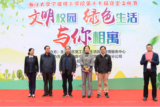 开幕式上,浙江浙大新宇物业集团有限公司宁波分公司总经理孔丽群介绍了本届寝室文化节的整体情况,并预祝本届文化节能顺利举办。与会领导为各学生公寓楼首批生活园区垃圾分类督导员颁发了聘书。