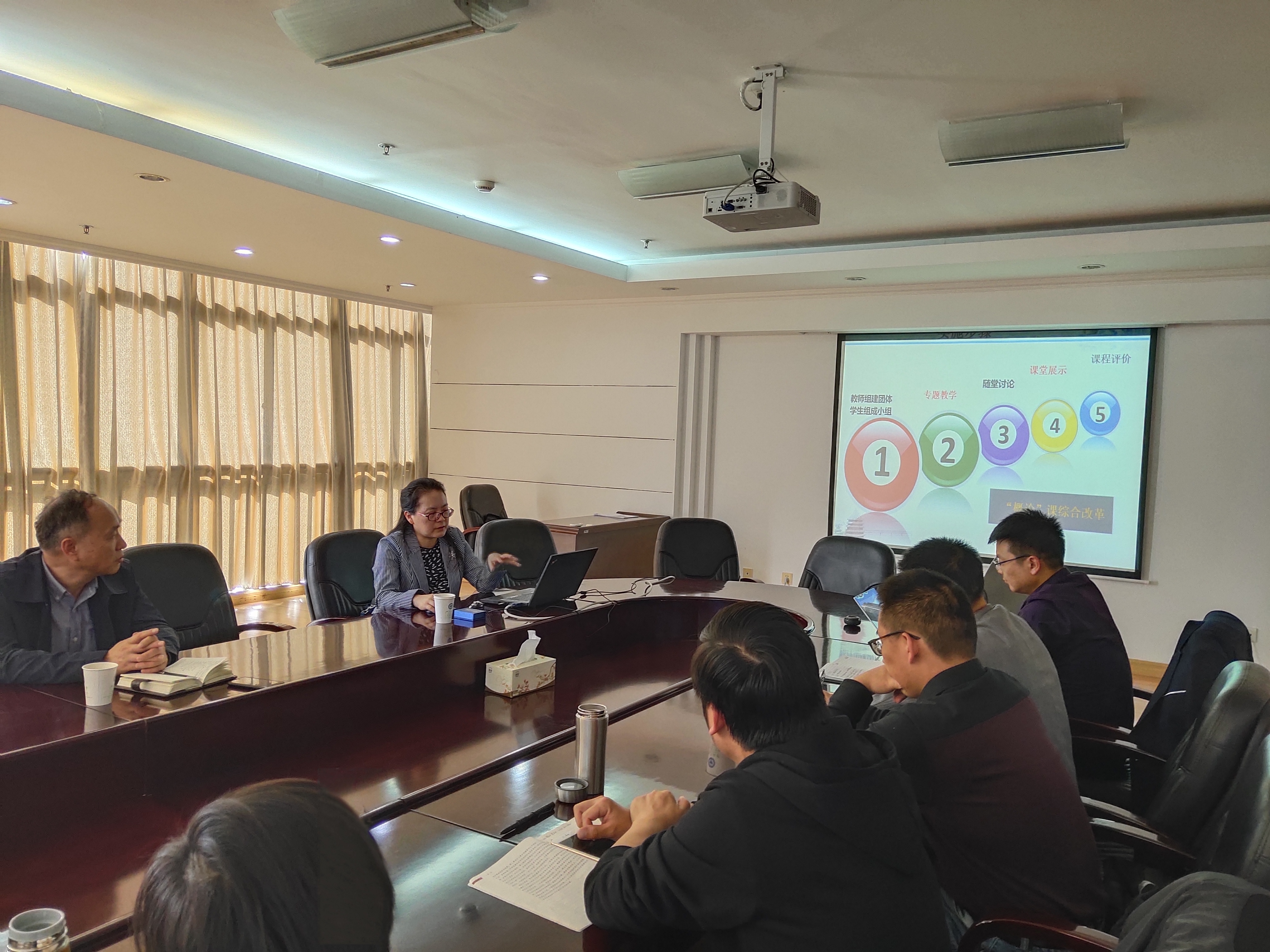 浙江大学马克思主义学院教研中心主任傅夏仙老师以学生自主学习与团队学习相结合、授课教师实现校内与校外相结合、教学内容实行课程教学与现场教学相结合、教学形式实行专题讲座和案例教学相结合、教学方式实行大班授课与小班讨论相结合、考评方式实行过程考核和结果考核相结合、考核主体实行教师打分与学生互评相结合的“七个结合”,介绍了浙江大学“概论”课程综合改革主要内容。报告引发了教研组老师的热烈交流和讨论,碰撞出了思想的火花,为进一步提升思想政治理论课教学质量、推动教学改革奠定了扎实的基础。